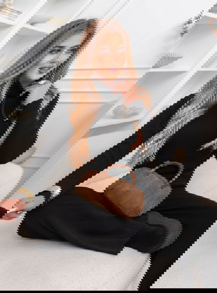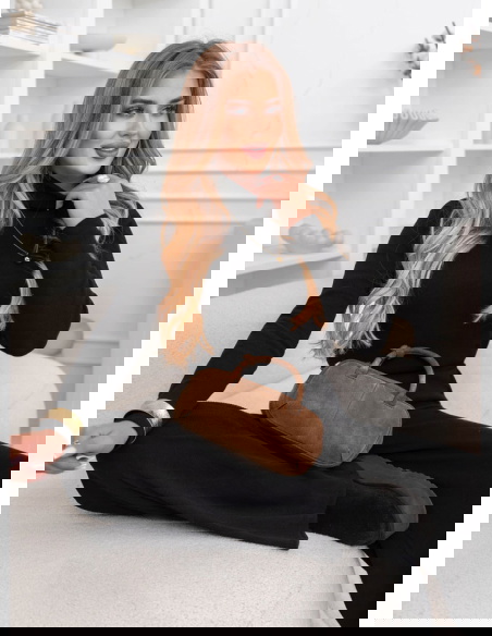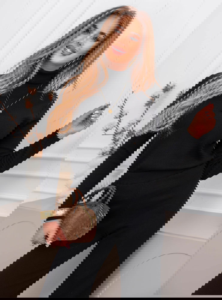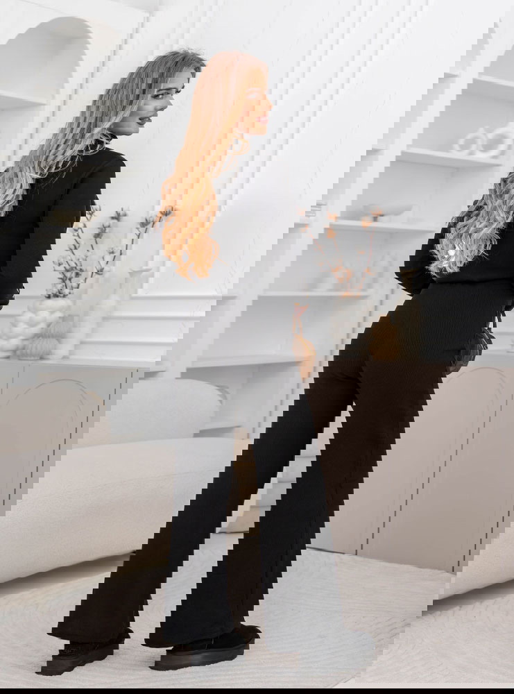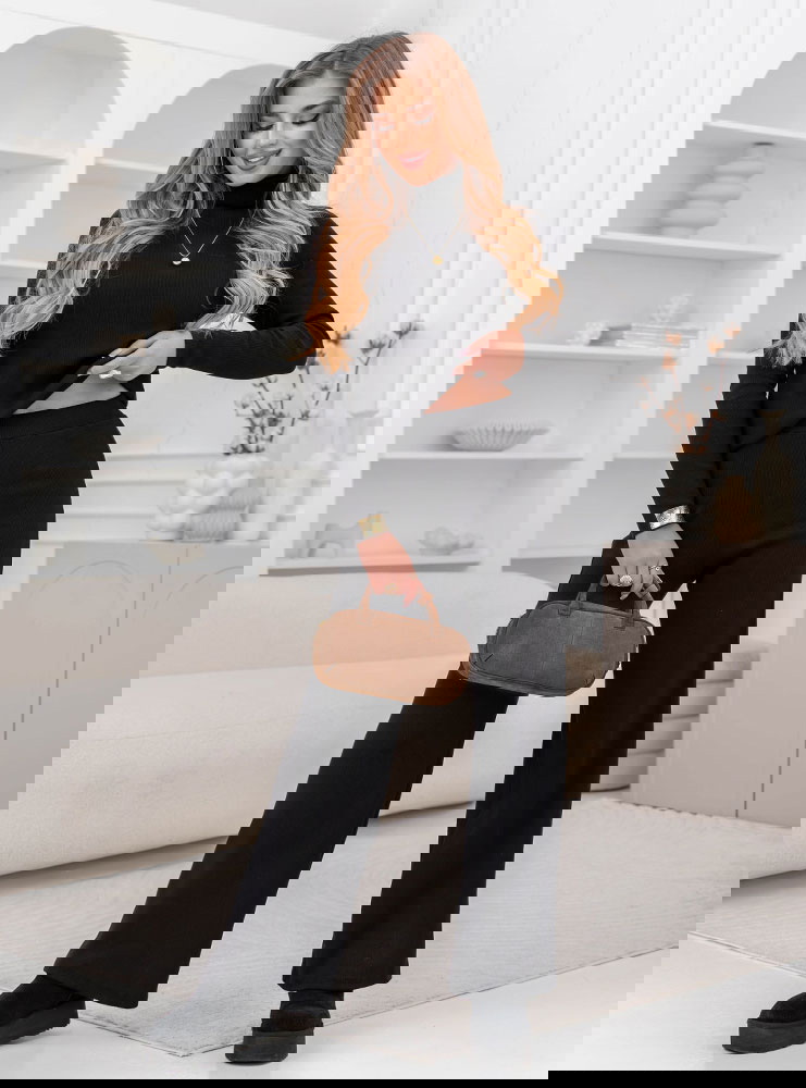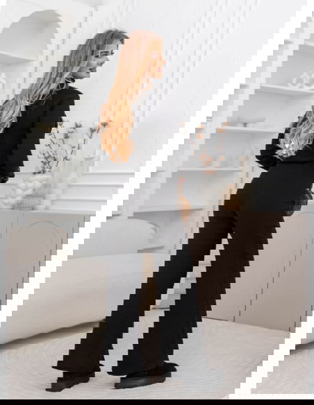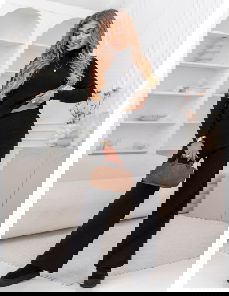 Czarny komplet bluzka z golfem i szerokie spodnie Liadh