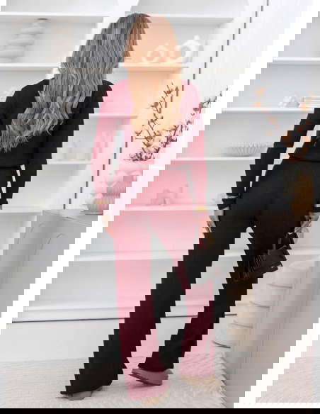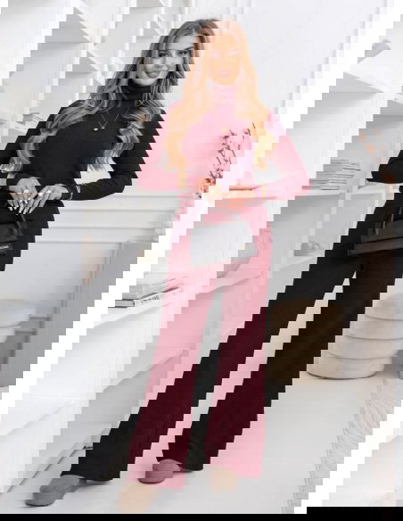 Bordowy komplet bluzka z golfem i szerokie spodnie Liadh