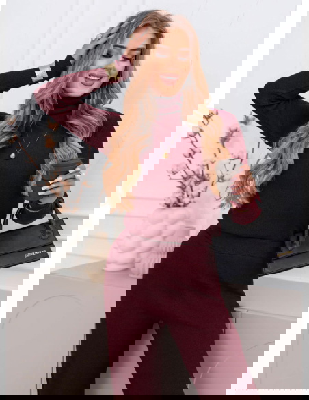 Bordowy komplet bluzka z golfem i...