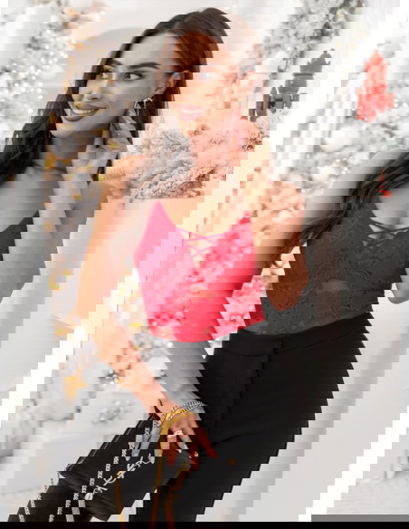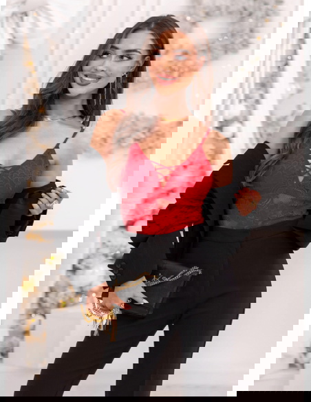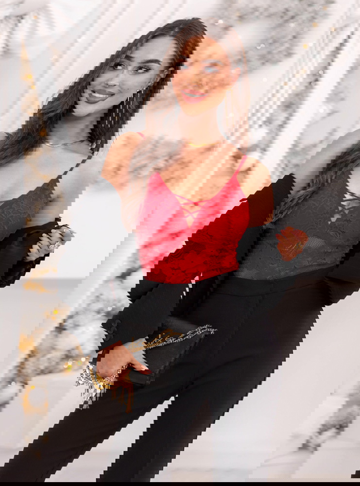 Malinowe koronkowe body ze strapsami na dekolcie Olivenee to wyjątkowa propozycja dla kobiet, które cenią subtelne połączenie zmysłowości i elegancji. Jego intensywny kolor przyciąga uwagę i dodaje pewności siebie, a koronkowe wykończenie wprowadza nutę romantyzmu. Delikatne ramiączka i ozdobne paski na dekolcie tworzą efektowną kompozycję, podkreślającą kobiece kształty. To model, który łączy lekkość i elegancję z odrobiną odwagi, zachowując przy tym wysublimowany charakter. Starannie dopasowany krój podkreśla talię i nadaje sylwetce harmonijnych proporcji. Body doskonale wpisuje się w jesienno-zimowy klimat – można je nosić zarówno samodzielnie, jak i jako bazę pod marynarkę czy sweter. Malinowy odcień dodaje ciepła, energii i wyrazistości każdej stylizacji. To idealny wybór, gdy chcesz poczuć się wyjątkowo kobieco i zmysłowo.
