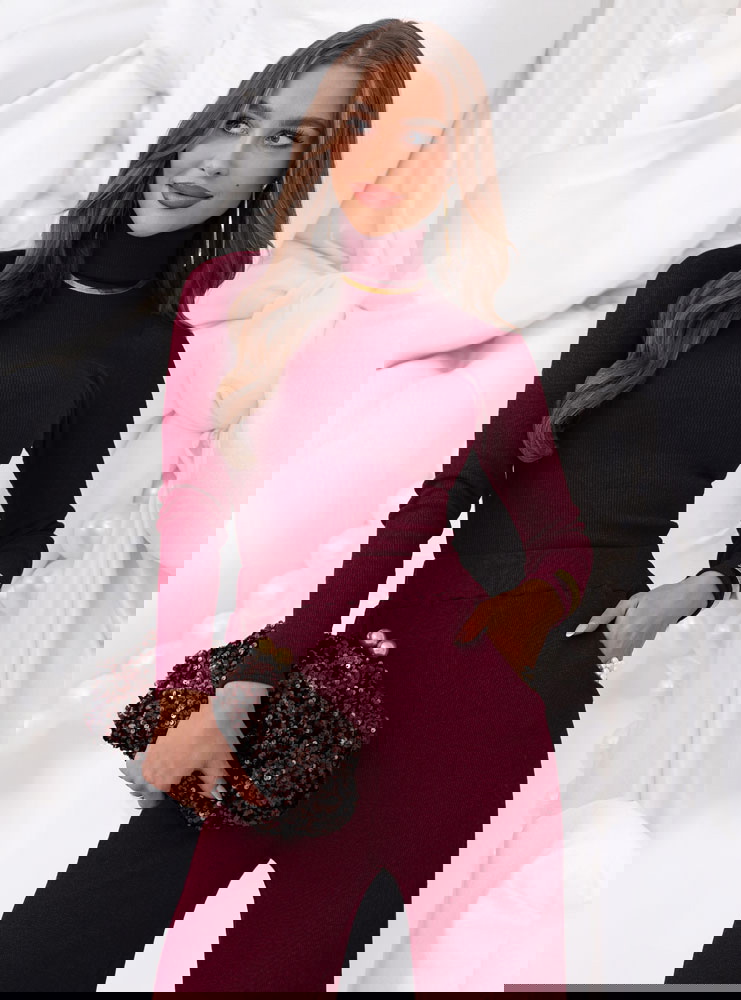 Bordowy prążkowany komplet bluzka z golfem i spodnie Clarencia to propozycja, która od pierwszej chwili zachwyca elegancją i przytulnym, zimowym charakterem. Jego głęboki bordowy odcień prezentuje się wyjątkowo szlachetnie, dodając stylizacji ciepła i ponadczasowego uroku. Prążkowana struktura materiału subtelnie podkreśla sylwetkę, zapewniając jednocześnie nowoczesny i wyjątkowo stylowy efekt. Bluzka z golfem pięknie podkreśla linię szyi, wprowadzając elegancki, dopracowany akcent idealny na chłodniejsze dni. Szerokie spodnie tworzą efekt wysmuklonej sylwetki i nadają całości lekkości oraz swobodnego, modowego wyrazu. To komplet, który doskonale łączy wygodę z elegancją, tworząc spójną i harmonijną stylizację. Każdy element zaprojektowany został tak, aby wyglądać efektownie zarówno razem, jak i noszony osobno. To propozycja idealna dla kobiet, które cenią szyk w połączeniu z komfortem, bez rezygnowania z nowoczesnego stylu. Komplet prezentuje się wyjątkowo zarówno na co dzień, jak i podczas bardziej uroczystych okazji.