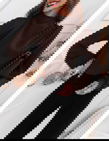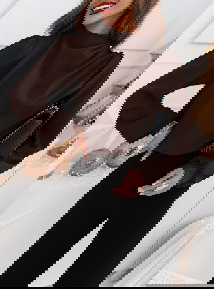 Czekoladowa elegancka bluzka z ozdobnymi guzikami Lomasi to propozycja, która od pierwszych chwil zachwyca swoim subtelnym, wyrafinowanym charakterem. Jej głęboki, czekoladowy odcień dodaje stylizacji klasy i jesienno-zimowego ciepła, idealnie wpisując się w sezon. Gładka forma bluzki prezentuje się niezwykle elegancko, tworząc bazę zarówno do codziennych, jak i bardziej wyjściowych zestawień. Delikatnie podwyższony dekolt nadaje całości szlachetnego wykończenia, podkreślając szyję w wyjątkowo estetyczny sposób. Długie rękawy o lekko zbluzowanej linii dodają swobody i elegancji, jednocześnie zachowując stonowany charakter. Najbardziej zjawiskowym akcentem są ozdobne guziki umieszczone przy ramieniu, które tworzą subtelny, stylowy detal. To model, który łączy prostotę z nutą luksusu, nie przytłaczając sylwetki. Idealnie sprawdzi się w sezonie, kiedy chcemy poczuć się kobieco, nowocześnie i jednocześnie bardzo elegancko. Każdy element został dopracowany tak, by bluzka zachwycała swoją formą i ponadczasowym urokiem.