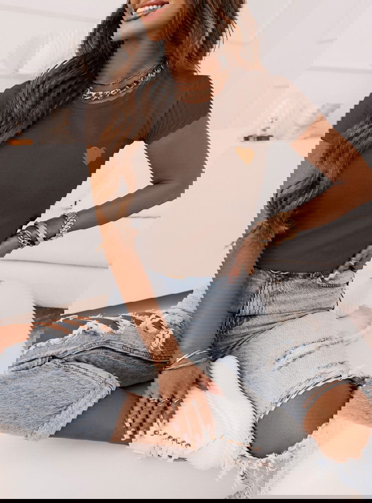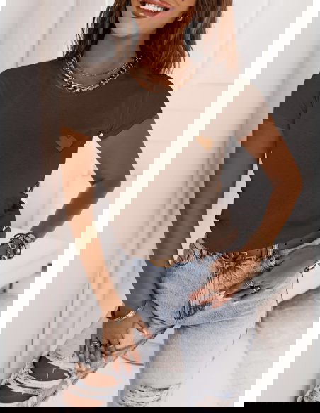 Czekoladowa koszulka na krótki rękaw z ozdobnym nadrukiem Belisimoo to propozycja, która już od pierwszego momentu zachwyca swoim prostym, a jednocześnie stylowym charakterem. To model idealny na jesienno-zimowy sezon, kiedy stonowane barwy i komfortowe fasony stają się podstawą codziennych stylizacji. To koszulka, która łączy w sobie wygodę i subtelną elegancję, prezentując się wyjątkowo lekko i nowocześnie. To propozycja dla kobiet, które lubią podkreślać swój styl dodatkami i delikatnymi akcentami. To model, który świetnie dopasowuje się do sylwetki, nie krępując ruchów, a jednocześnie podkreślając atuty figury. To koszulka, która idealnie wpisuje się w codzienny rytm dnia – zarówno podczas wyjść, jak i chwil spędzonych w domowym zaciszu. To propozycja, która dzięki ozdobnemu nadrukowi zyskuje na uroku i wyrazistości. To także idealna baza do wielu stylizacji, zarówno tych bardziej casualowych, jak i lekkich eleganckich zestawów. To model, który zachwyci prostotą w pięknym, kobiecym wydaniu.