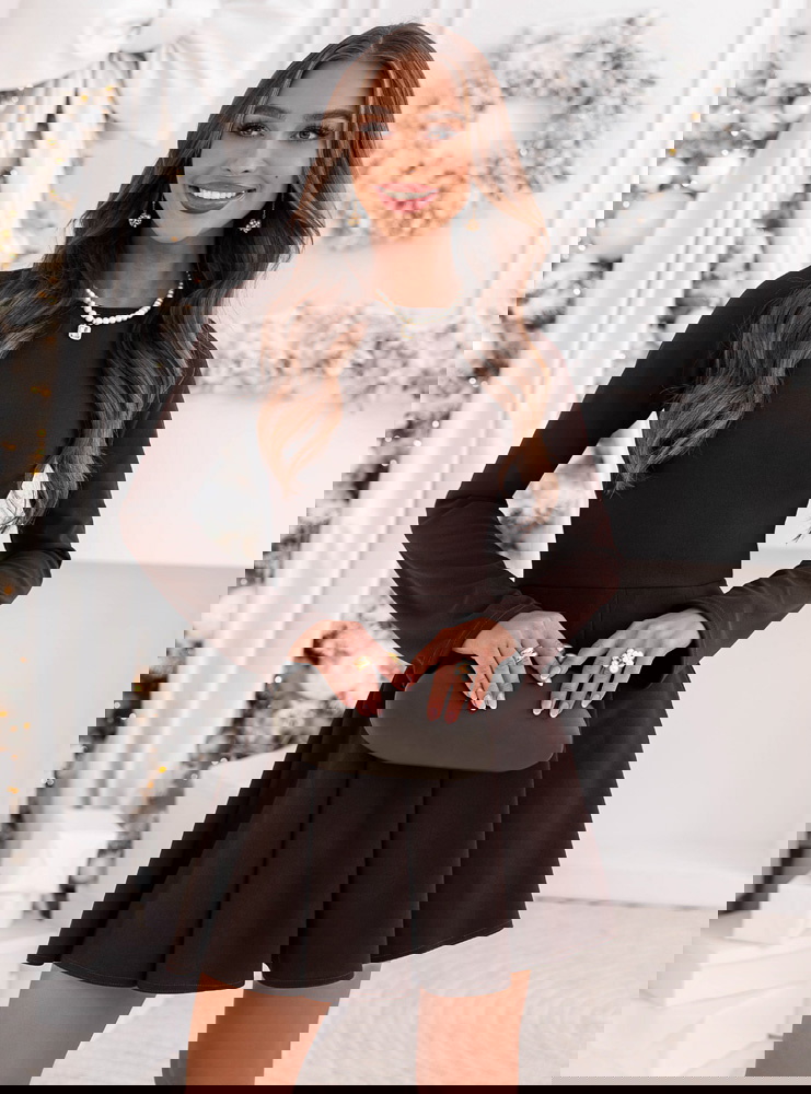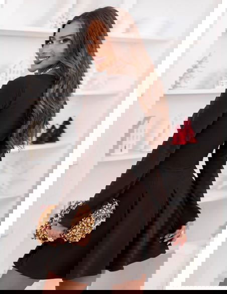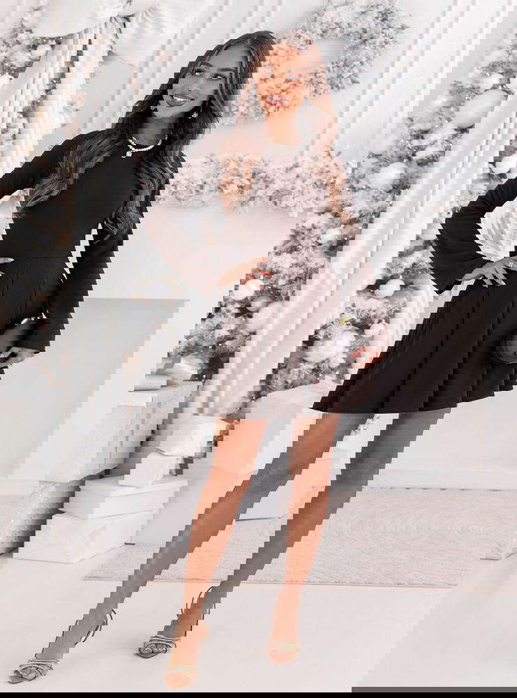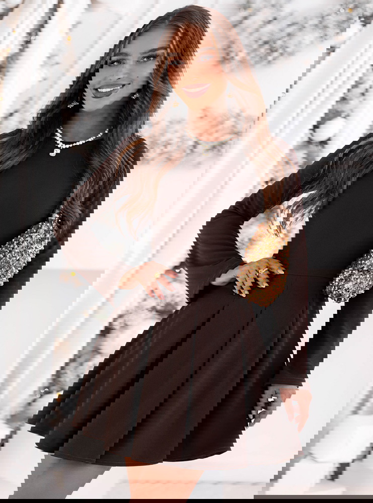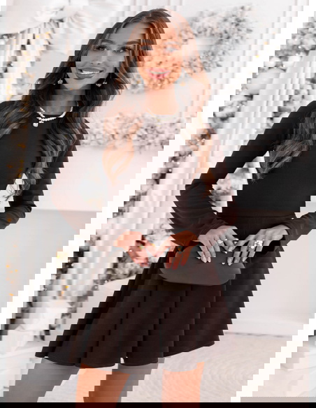 Czekoladowa rozkloszowana sukienka mini Lavonne to propozycja, która od pierwszej chwili zachwyca swoją elegancką prostotą i jesienno-zimowym urokiem. Jej głęboki czekoladowy odcień nadaje stylizacji ciepła oraz ponadczasowej klasy, idealnie wpisując się w sezon pełen przytulnych, ale wciąż szykownych wyborów. Gładka, dopasowana góra pięknie podkreśla linię ramion i szyi, tworząc subtelny, kobiecy efekt. Rozkloszowany dół z miękkimi plisowaniami dodaje lekkości i delikatnego, dziewczęcego charakteru, który świetnie prezentuje się w ruchu. Długie rękawy nadają całości eleganckiego balansu, czyniąc sukienkę idealną na chłodniejsze dni. To model, który łączy wygodę, styl i klasyczną kobiecość, nie przytłaczając sylwetki. Każdy element sukienki został zaprojektowany tak, aby tworzyć harmonijną całość, która sprawdzi się zarówno w codziennych, jak i wyjątkowych stylizacjach. To doskonały wybór dla kobiet, które cenią minimalistyczne formy wzbogacone subtelnym urokiem. Całość prezentuje się maksymalnie elegancko, zachowując przy tym delikatny, nowoczesny charakter.