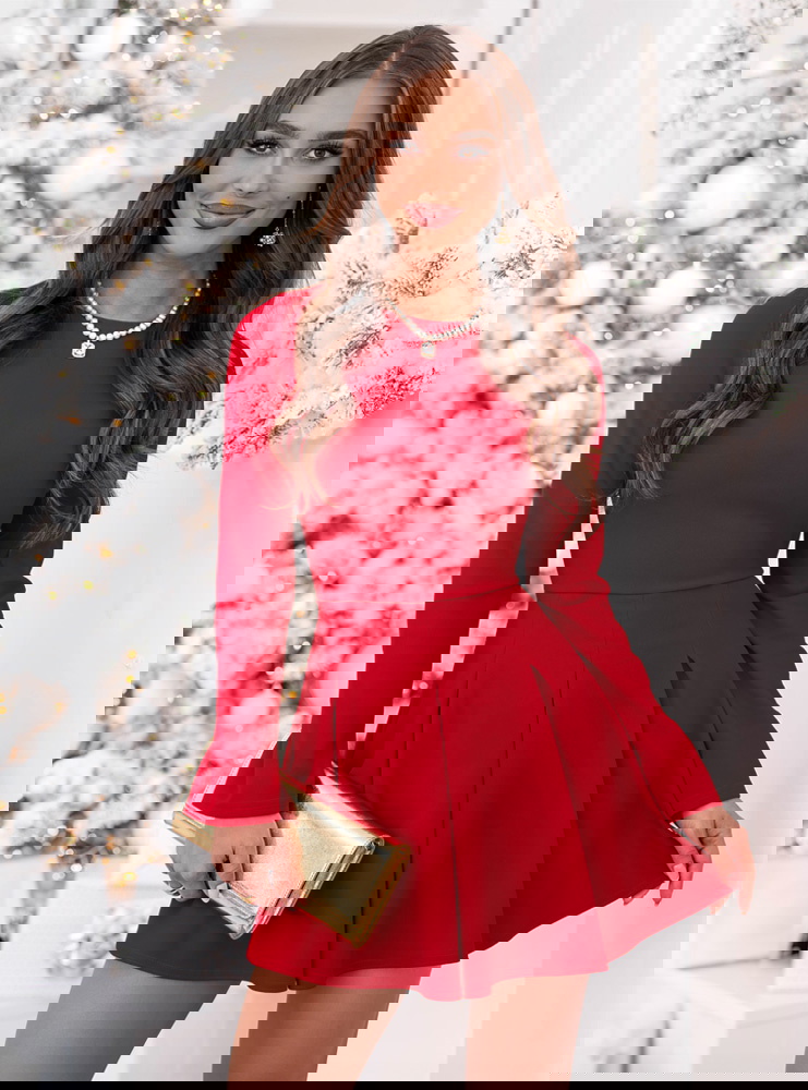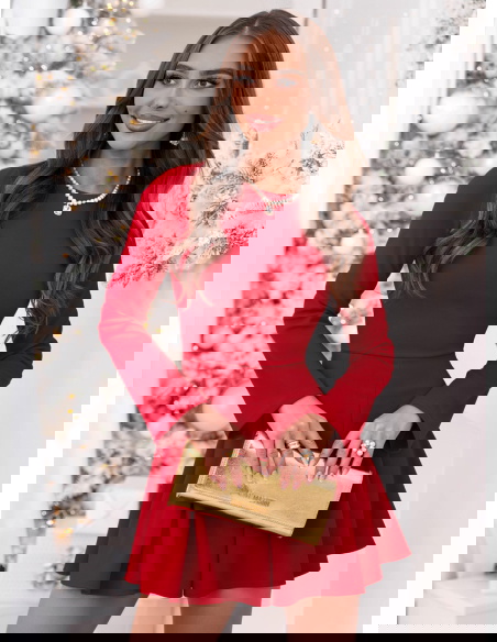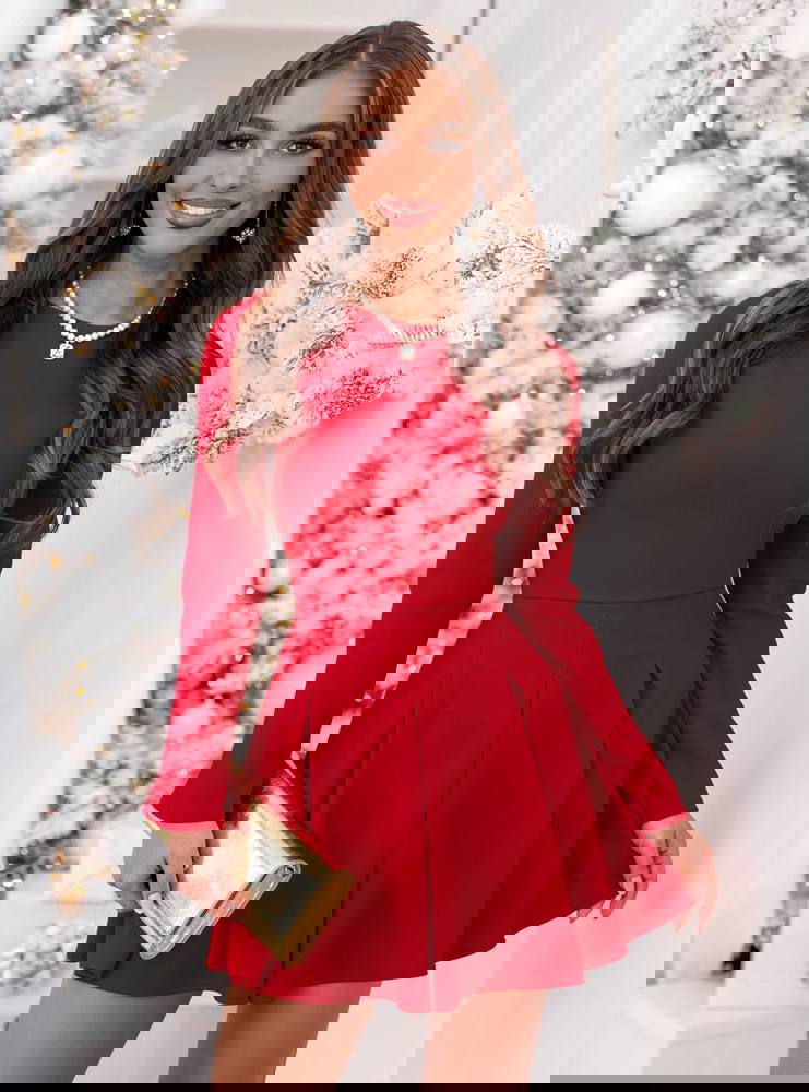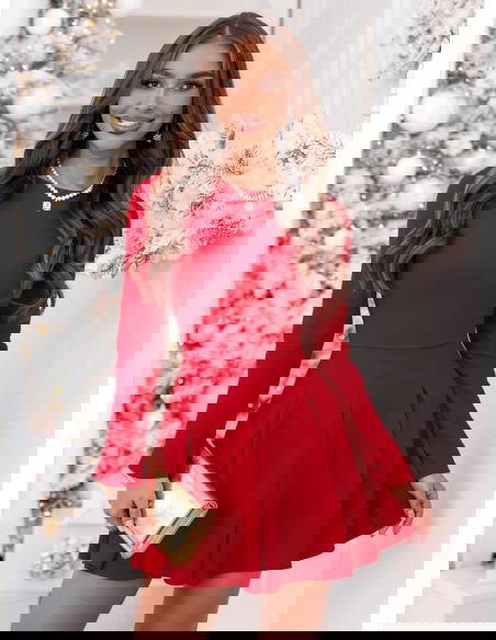 Malinowa rozkloszowana sukienka mini Lavonne to wyjątkowa propozycja, która łączy w sobie kobiecy urok i ponadczasową elegancję. To model, który zachwyca swoją prostotą i perfekcyjnym krojem, idealnie podkreślającym figurę. Intensywny, malinowy odcień dodaje energii i pewności siebie, jednocześnie wprowadzając świąteczny i ciepły akcent do stylizacji. Góra o dopasowanym fasonie pięknie eksponuje sylwetkę, a rozkloszowany dół tworzy efekt lekkości i swobody. Długie rękawy nadają całości eleganckiego charakteru, sprawiając, że sukienka doskonale sprawdzi się w chłodniejsze dni. To model, który prezentuje się wyjątkowo kobieco i z klasą, niezależnie od okazji. Subtelny krój w połączeniu z wyrazistym kolorem sprawia, że całość wygląda stylowo, ale nie przesadnie. To sukienka, w której można poczuć się wyjątkowo, szykownie i zmysłowo jednocześnie. Idealna dla kobiet, które lubią połączenie klasyki i nowoczesnego wdzięku.