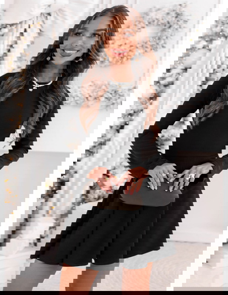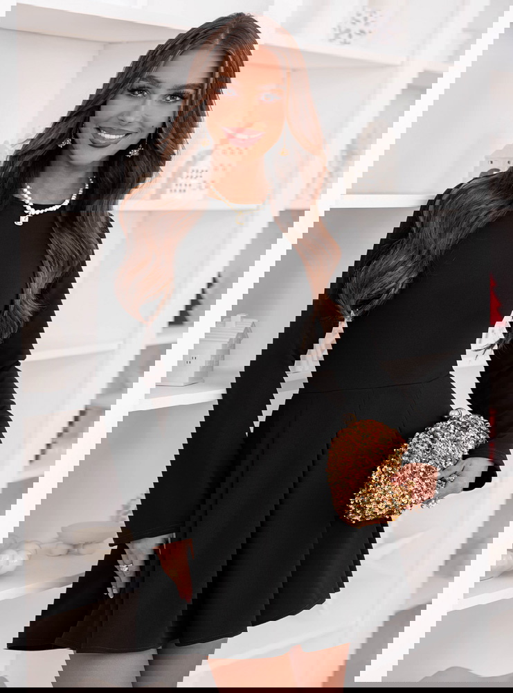 Czarna rozkloszowana sukienka mini Lavonne to klasyczna propozycja, która nigdy nie wychodzi z mody. Jej prosty, a zarazem efektowny krój sprawia, że prezentuje się niezwykle kobieco i elegancko. Rozkloszowany dół pięknie układa się przy każdym ruchu, tworząc lekki i pełen wdzięku efekt. Długie rękawy nadają całości bardziej stonowanego, jesienno-zimowego charakteru, jednocześnie podkreślając ponadczasową elegancję. Gładka, minimalistyczna góra pozwala skupić uwagę na talii i rozkloszowanym dole, dzięki czemu sylwetka wygląda harmonijnie i proporcjonalnie. To model, który łączy prostotę z wyrafinowanym stylem – idealny na wiele różnych okazji. Czerń nadaje jej uniwersalnego charakteru i sprawia, że zawsze wygląda szykownie. Ta sukienka to esencja klasy i kobiecego wdzięku.
