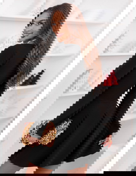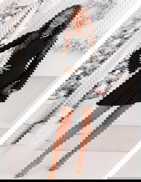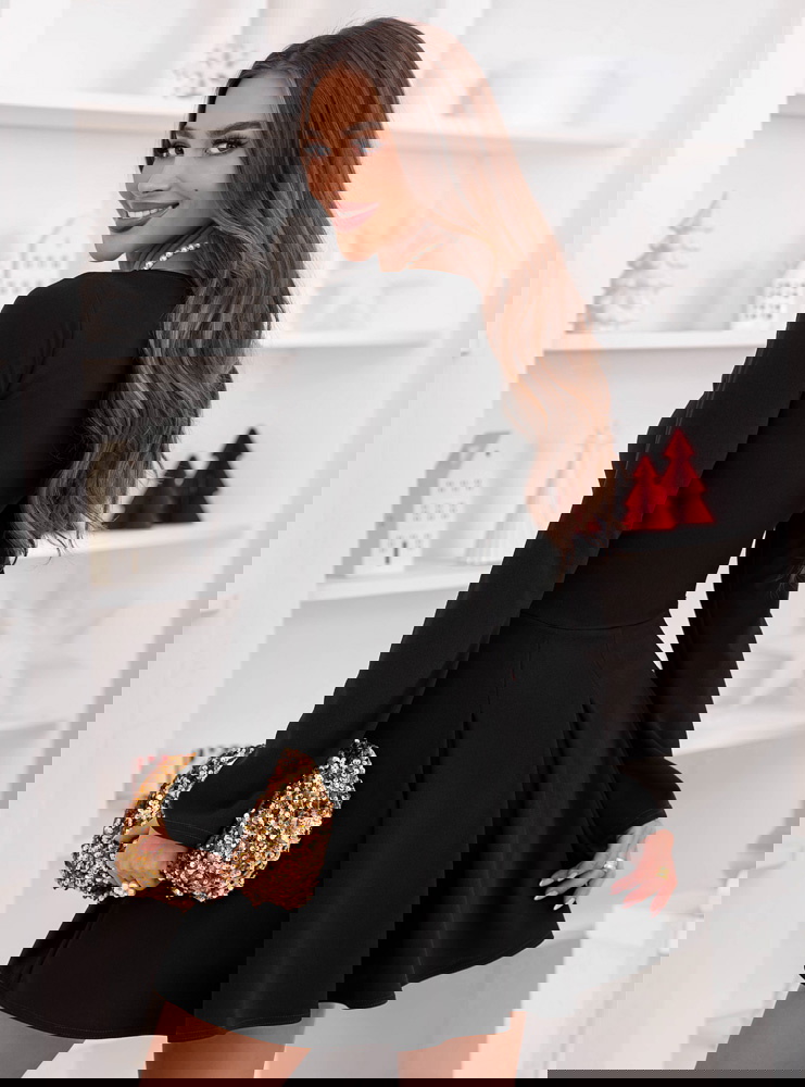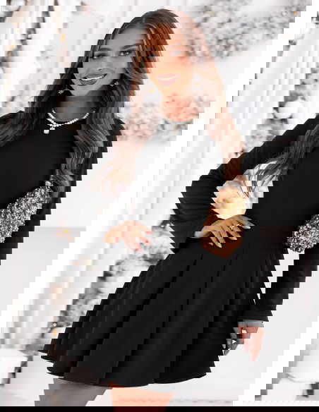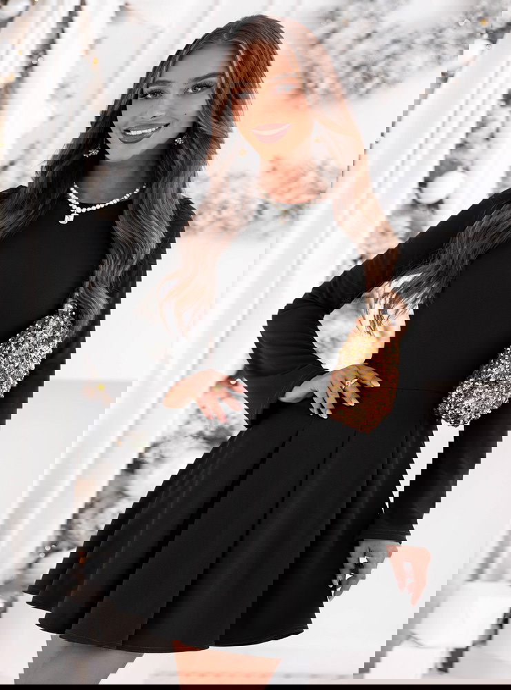Czarna rozkloszowana sukienka mini na święta Lavonne