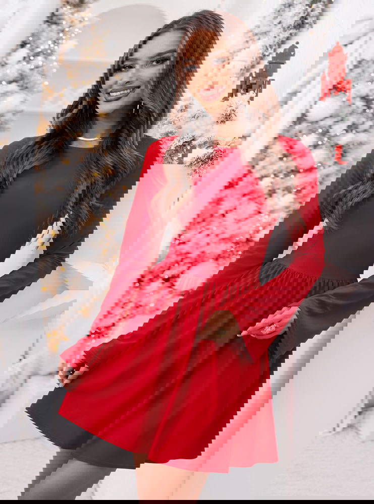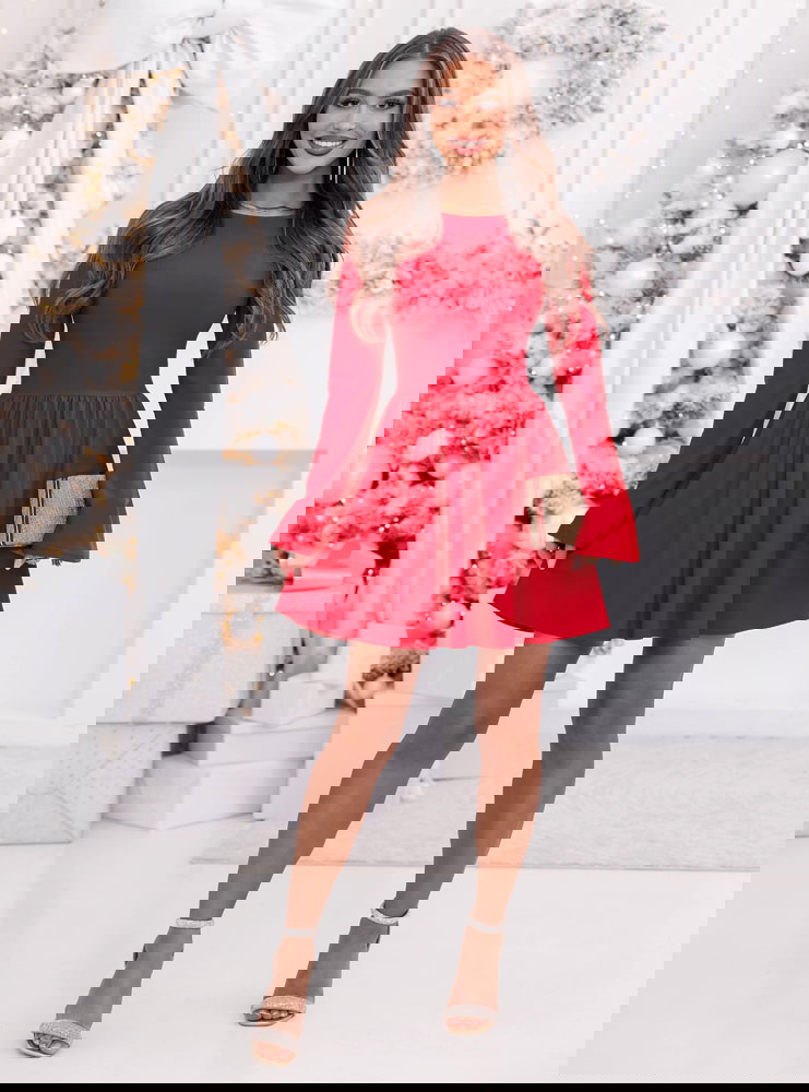 Malinowa rozkloszowana sukienka mini Sherraine to idealny wybór na świąteczne spotkania, rodzinne uroczystości oraz eleganckie kolacje. Sprawdzi się świetnie na zimowe przyjęcia, randki i wyjątkowe momenty w blasku świątecznych dekoracji.