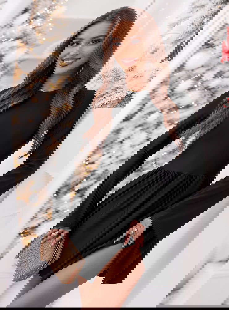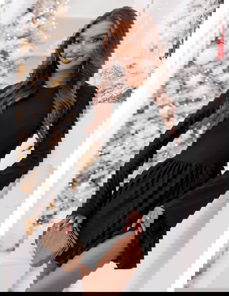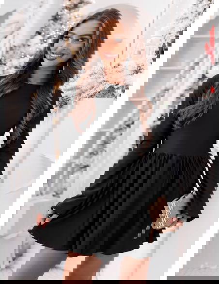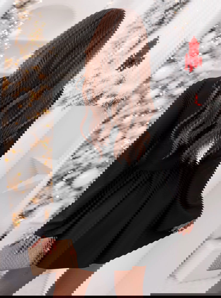 Czarna rozkloszowana świąteczna sukienka mini Sherraine