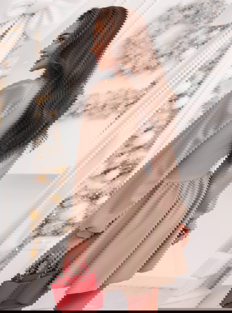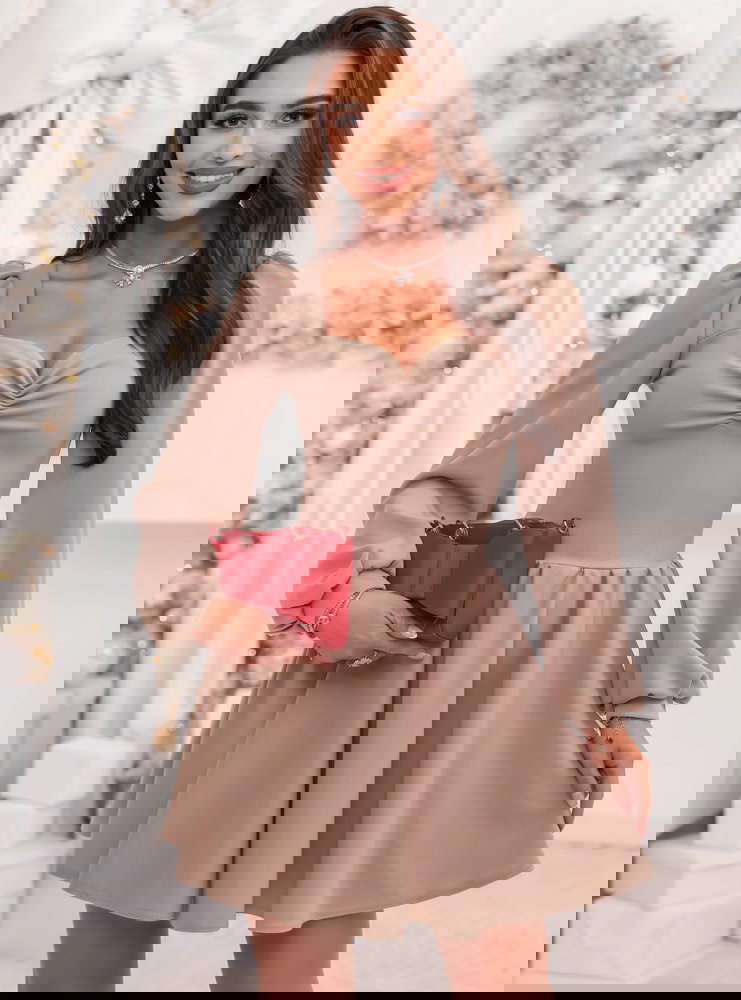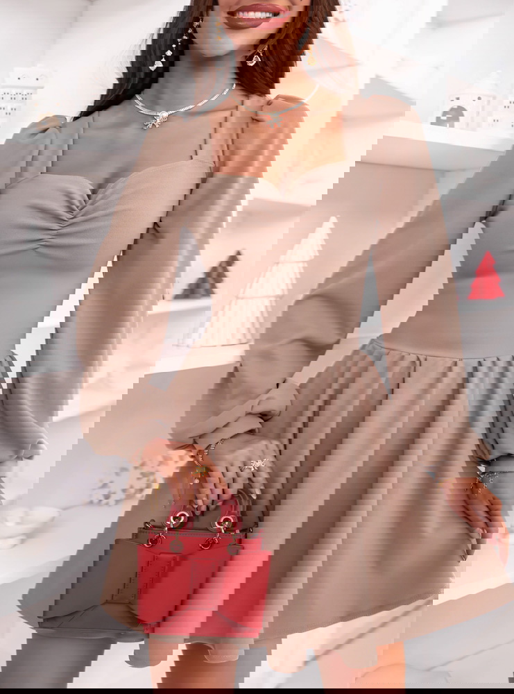 Beżowa sukienka z marszczeniem na dekolcie Ediline to propozycja, która od pierwszej chwili zachwyca swoją subtelną, a jednocześnie wyjątkowo kobiecą estetyką. To model, który doskonale wpisuje się w klimaty chłodniejszych miesięcy, oferując elegancję w lekkim, przyjemnym wydaniu. Jej delikatny odcień nadaje całości harmonii i sprawia, że prezentuje się niezwykle szykownie. Sukienka wprowadza do stylizacji miękką, romantyczną aurę, idealną na jesienno-zimowe dni pełne blasku i wyjątkowych chwil. Marszczenie na dekolcie pięknie podkreśla górne partie sylwetki, pozostając przy tym subtelnym i pełnym klasy dodatkiem. Rozkloszowany dół tworzy lekki, zwiewny efekt, który dodaje całości dziewczęcego wdzięku. Długie rękawy zapewniają przyjemne otulenie i sprawiają, że sukienka świetnie sprawdza się podczas sezonu świątecznego. To idealny model dla osób, które lubią łączyć elegancję z komfortem. Sylwetka wygląda w niej świeżo, proporcjonalnie i niezwykle efektownie. Ta sukienka sprawia, że każda stylizacja nabiera wyjątkowej, ciepłej atmosfery.