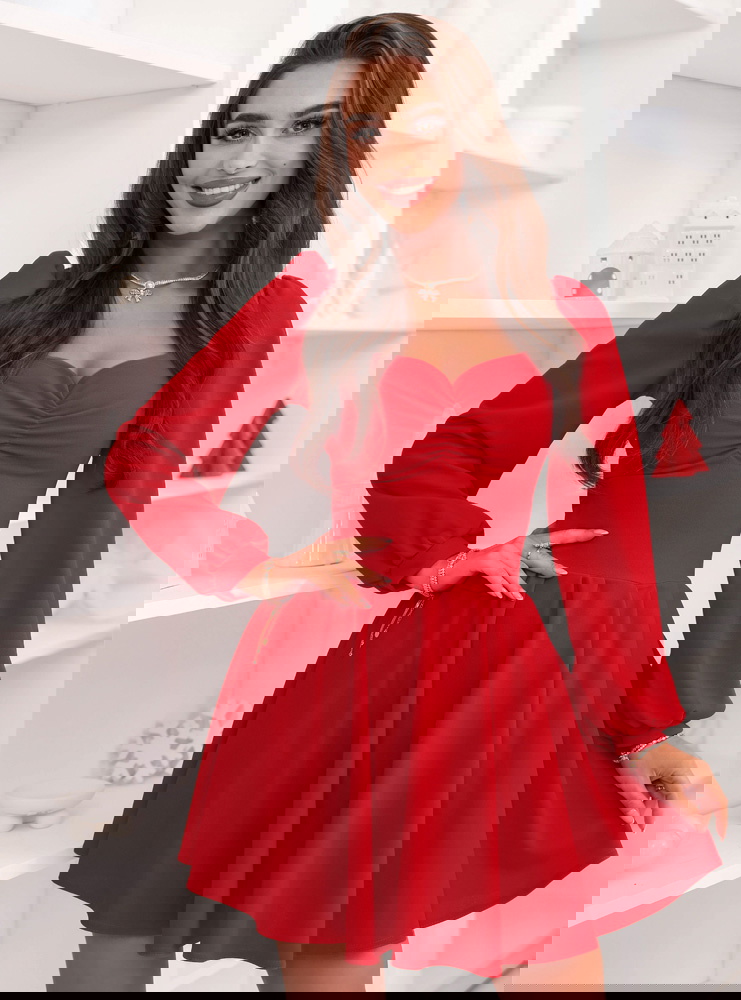 Malinowa sukienka z marszczeniem na dekolcie Ediline to idealna propozycja na świąteczne kolacje, rodzinne uroczystości i zimowe przyjęcia. Świetnie sprawdzi się również na randkach, eleganckich spotkaniach czy wieczornych wyjściach.