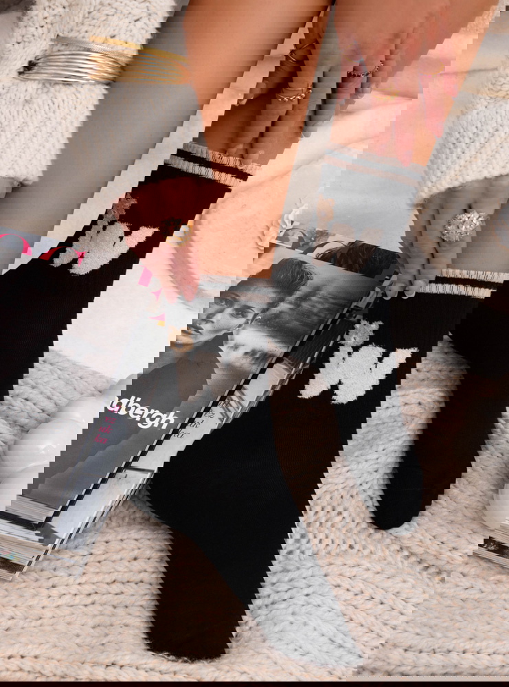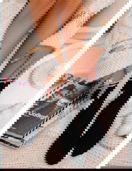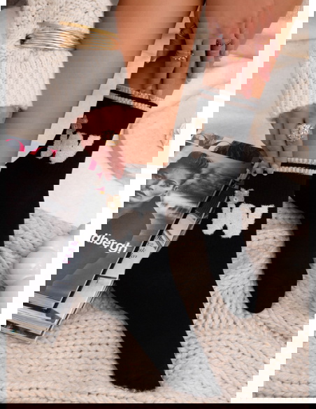 Czarne skarpetki z ozdobnym motywem Genice to propozycja, która łączy wygodę z uroczym, jesienno-zimowym charakterem. Ich ciemny odcień dodaje stylizacjom elegancji, a jednocześnie świetnie współgra z przytulnymi swetrami i neutralnymi dodatkami. Uroczy misio nadaje skarpetkom słodkiego, ciepłego wyrazu. Kontrastowe paski przy górnej krawędzi podkreślają ich sportowy, dziewczęcy styl. To dodatek, który od razu zwraca uwagę dzięki połączeniu prostoty i urokliwego detalu.