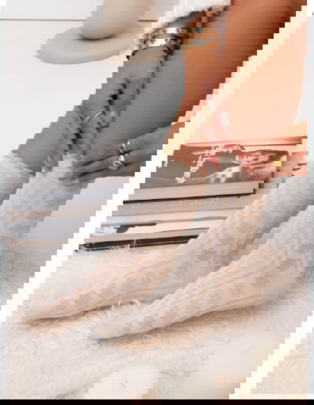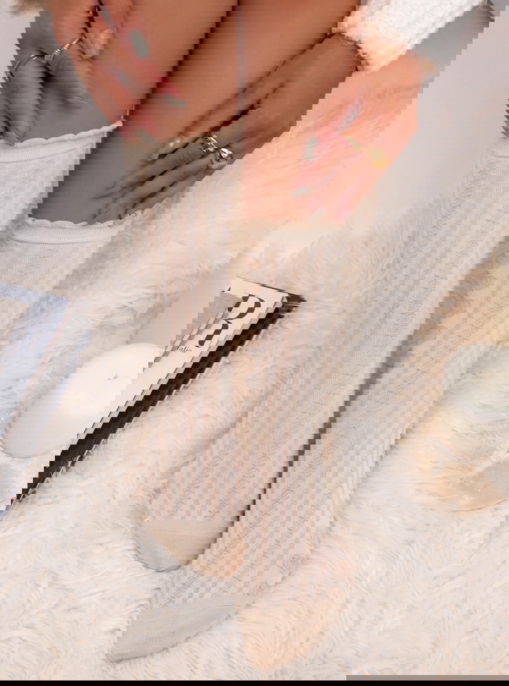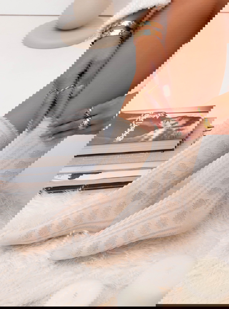Beżowe skarpetki z ozdobnym wzorem Raellyn to propozycja, która wyróżnia się delikatnością i subtelnym, romantycznym charakterem. Ich jasny odcień dodaje stylizacjom lekkości, a ażurowy wzór z motywem serduszek prezentuje się wyjątkowo uroczo. Geometryczne przeploty nadają całości efektownego, dekoracyjnego wyglądu. Falowane wykończenie u góry podkreśla kobiecy styl i dodaje całości miękkości. To skarpetki, które zachwycają dopracowanym wykończeniem i wdzięcznym detalem.