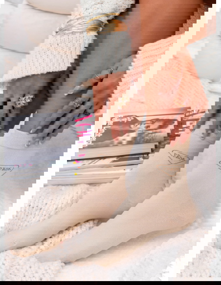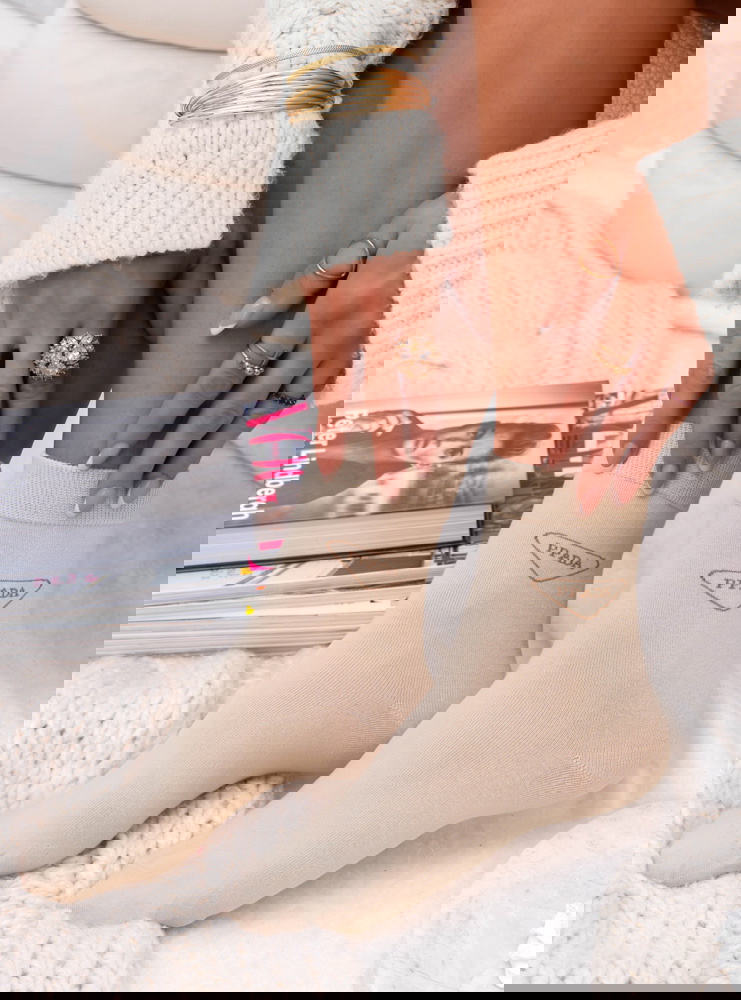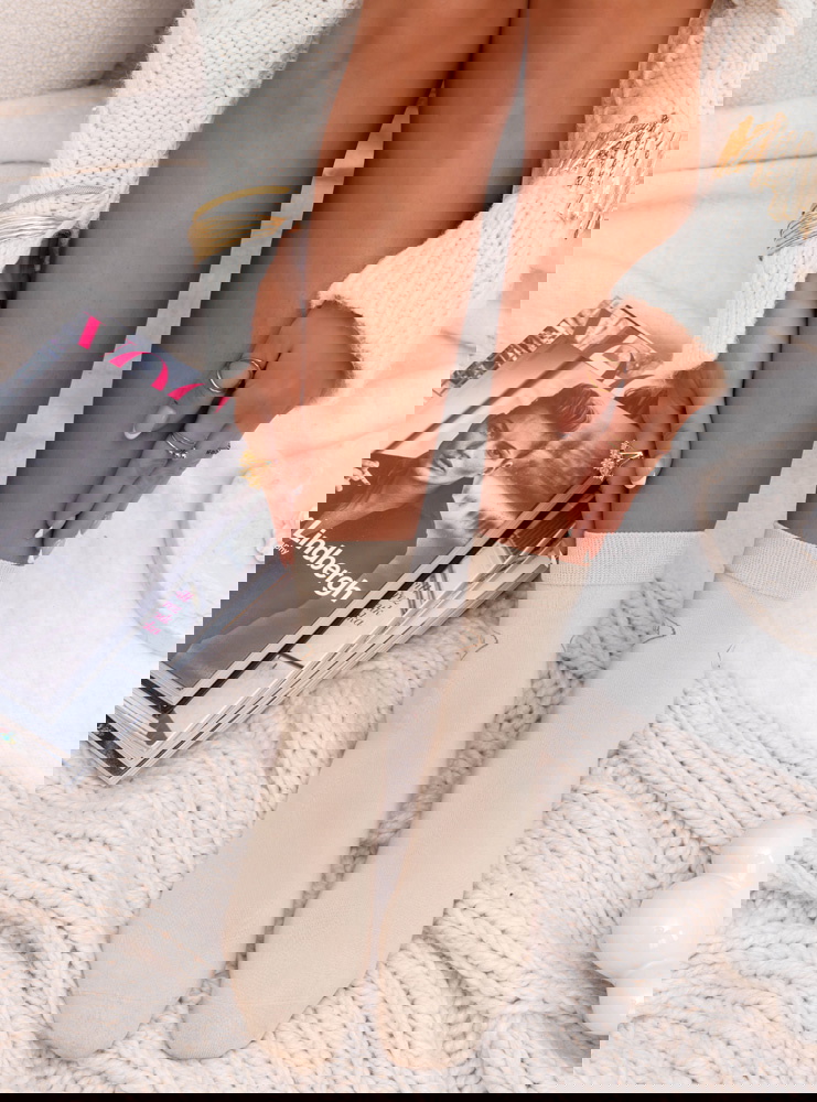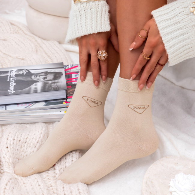 Beżowe skarpetki z ozdobnym napisem Liekess