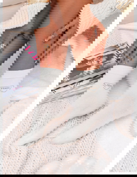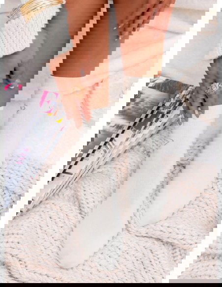 Skarpetki z ozdobnym napisem Liekess - ecru doskonale uzupełnią różnorodne, codzienne stylizacje.