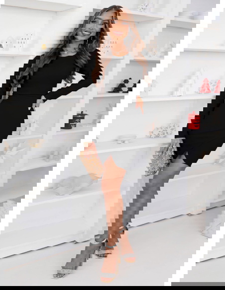 Czarna dopasowana sukienka z przekładaniem na dole Perianne to idealny wybór na wiele okazji — od eleganckich kolacji po wieczorne wyjścia czy świąteczne spotkania. Świetnie sprawdzi się również podczas randek lub uroczystości rodzinnych.