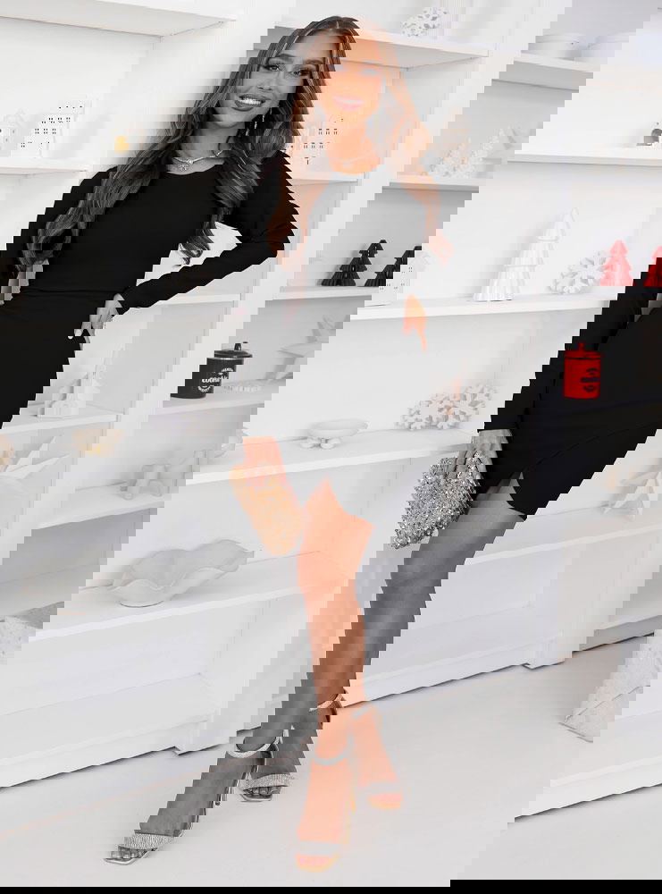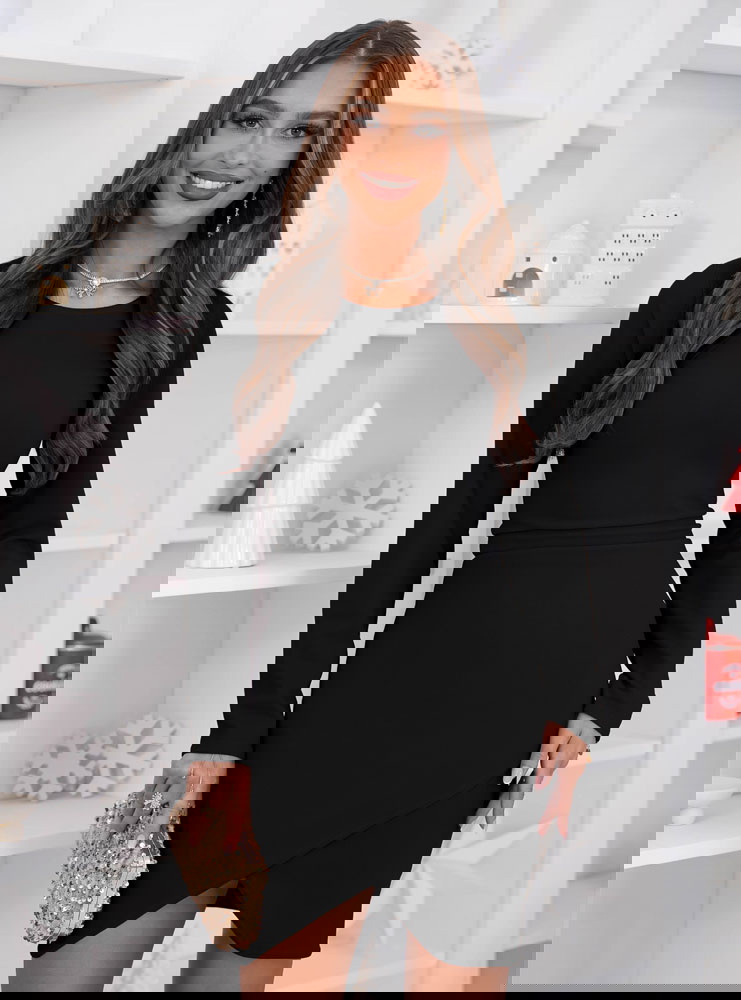 Czarna dopasowana sukienka z przekładaniem na dole Perianne to kwintesencja elegancji w minimalistycznym wydaniu. To model, który zachwyca prostotą, jednocześnie emanując klasą i kobiecym wdziękiem. Dopasowany krój pięknie podkreśla sylwetkę, subtelnie akcentując talię i kształty. Długość mini w połączeniu z delikatnym przekładanym dołem dodaje całości zmysłowości, pozostając przy tym gustowna i stonowana. Długie rękawy oraz gładka, jednolita tkanina czynią z niej doskonały wybór na sezon jesienno-zimowy. Czarny kolor sprawia, że to uniwersalna propozycja, którą można stylizować na wiele sposobów — zarówno elegancko, jak i nieco bardziej nowocześnie. To sukienka stworzona dla kobiet, które cenią ponadczasowy szyk, a przy tym lubią czuć się pewnie i stylowo. W tej kreacji można wyglądać zjawiskowo bez wysiłku.