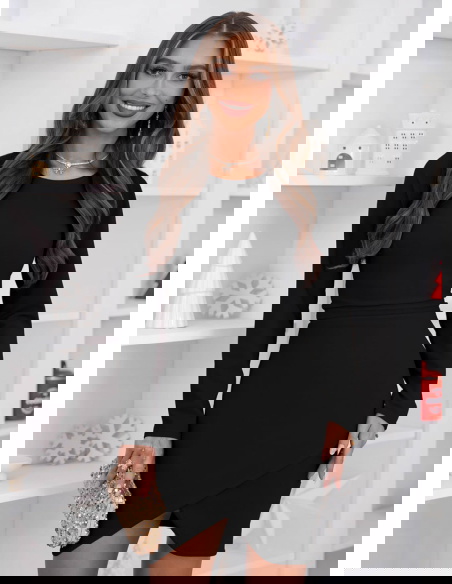 Czarna dopasowana sukienka świąteczna z przekładaniem na dole Perianne
