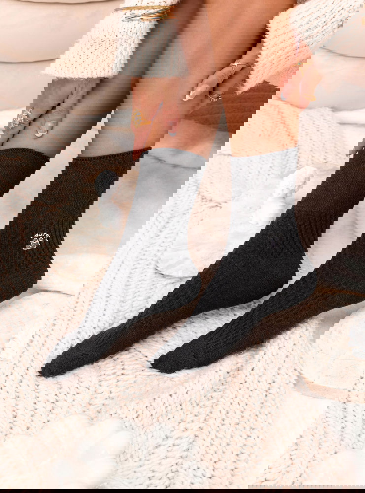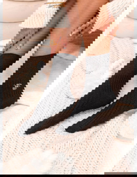 Grafitowe skarpetki z ozdobną naszywką Irie