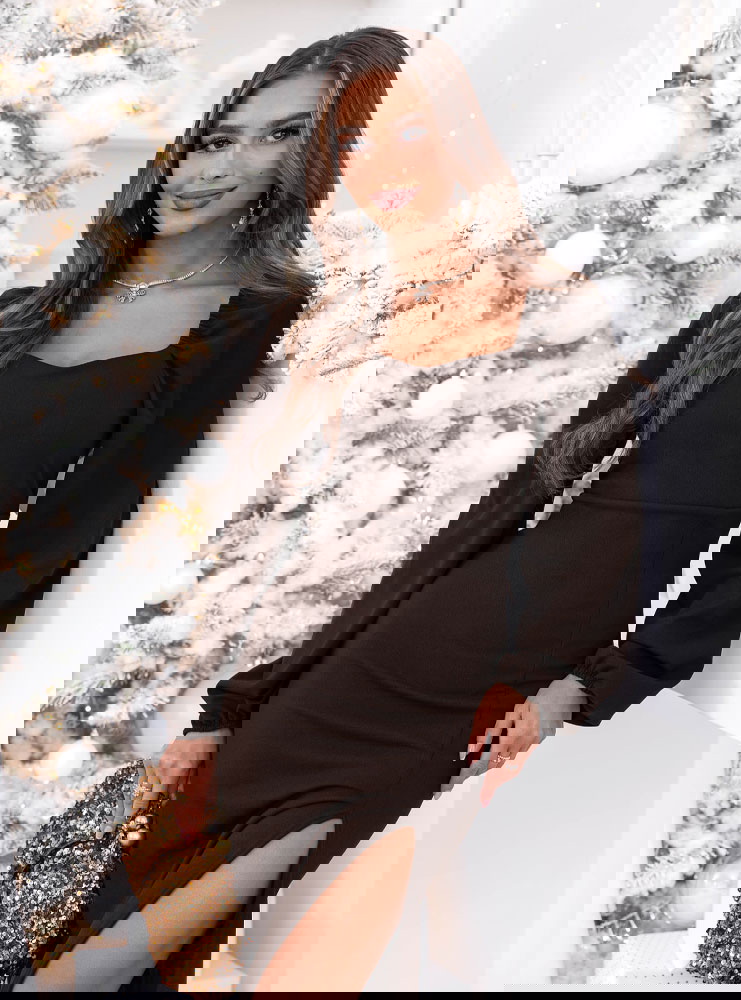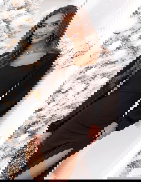 Czekoladowa sukienka świąteczna z rozcięciem Jonielle