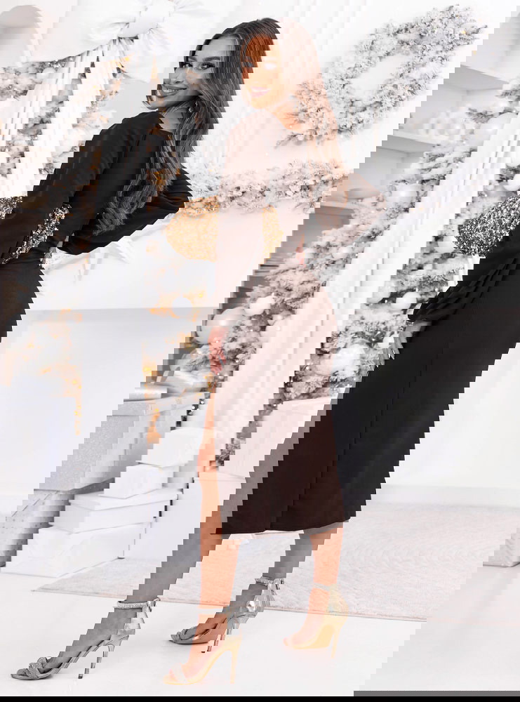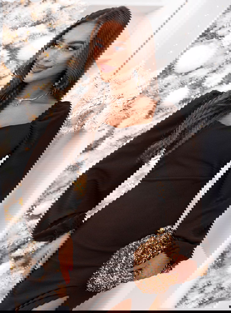Czekoladowa sukienka świąteczna z...