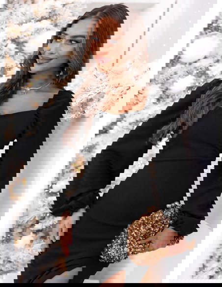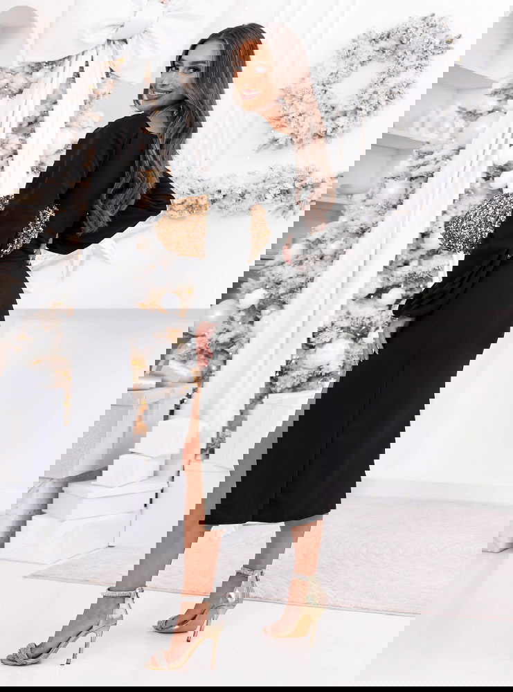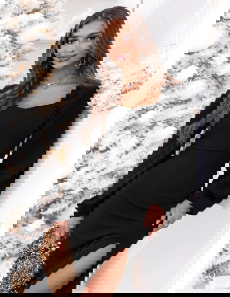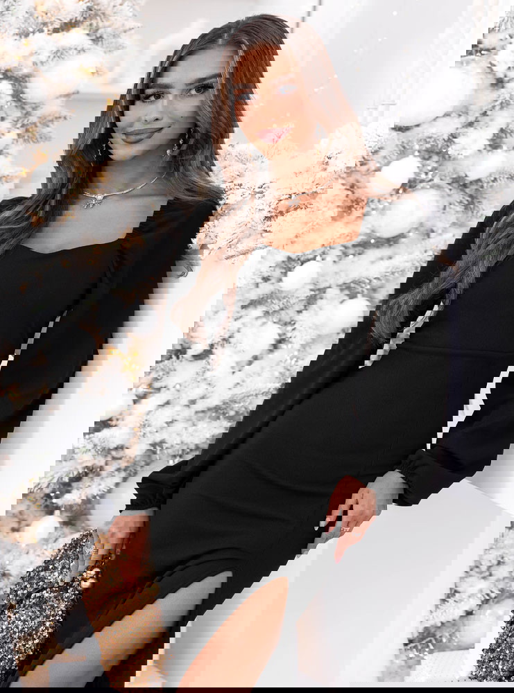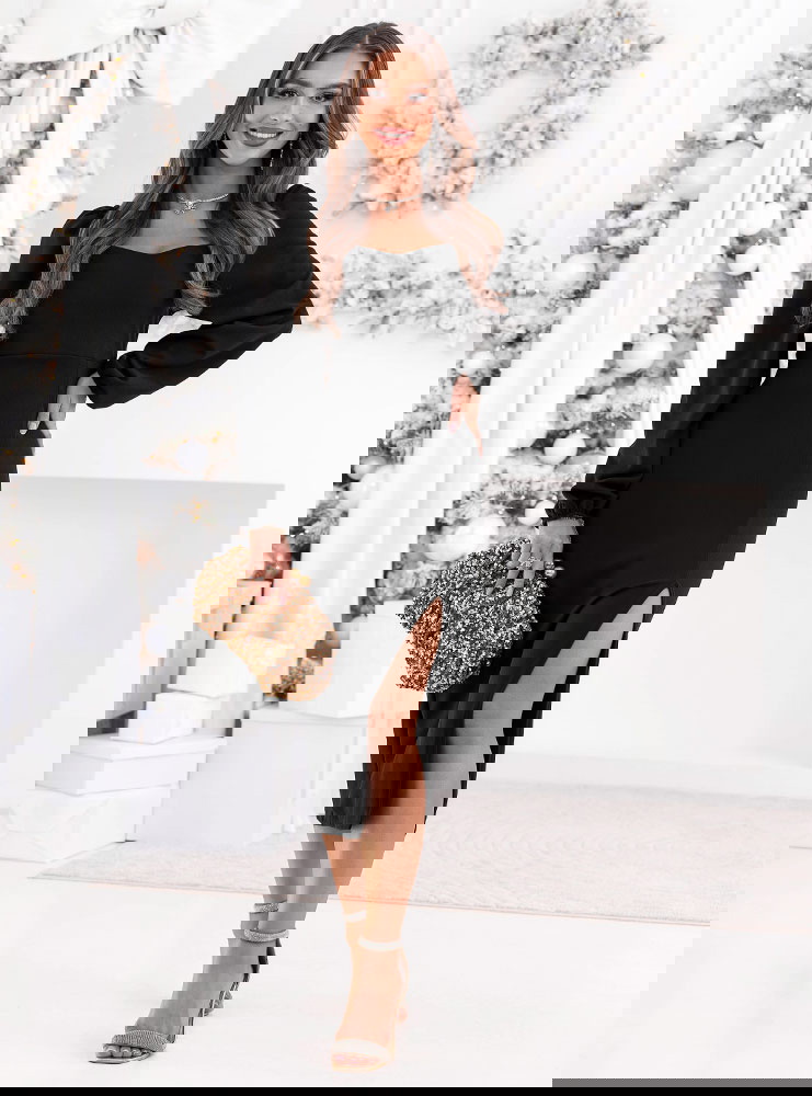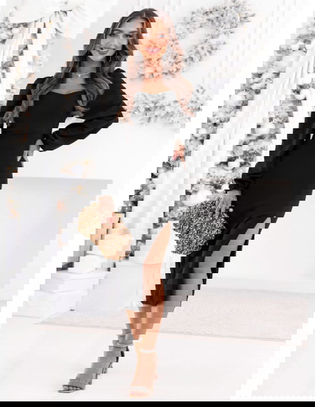 Czarna sukienka świąteczna z rozcięciem Jonielle