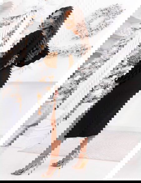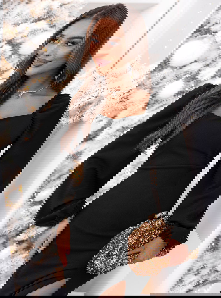 Czarna sukienka z rozcięciem Jonielle to kwintesencja elegancji, klasy i kobiecego wdzięku. To model, który zachwyca swoją prostotą, a jednocześnie emanuje wyrafinowanym stylem. Głęboka czerń nadaje całości ponadczasowego charakteru, dzięki czemu sukienka sprawdzi się na wiele okazji. Dopasowany krój pięknie podkreśla figurę, a długość midi w połączeniu z efektownym rozcięciem na nodze dodaje jej zmysłowości. Długie, lekko bufiaste rękawy wprowadzają subtelną lekkość i elegancję. Dekolt w kształcie serca delikatnie eksponuje ramiona i szyję, tworząc kobiecą i harmonijną sylwetkę. To sukienka, która łączy w sobie klasyczny szyk z nutą nowoczesności. Idealna dla kobiet, które cenią elegancję w minimalistycznym wydaniu. W tej kreacji każda kobieta poczuje się wyjątkowo, pewnie i stylowo.