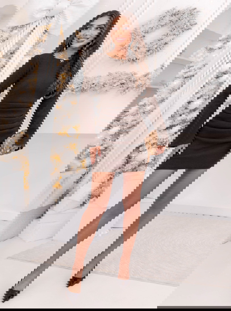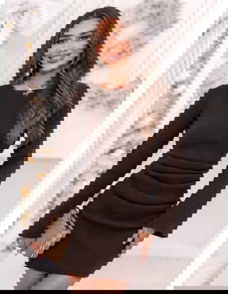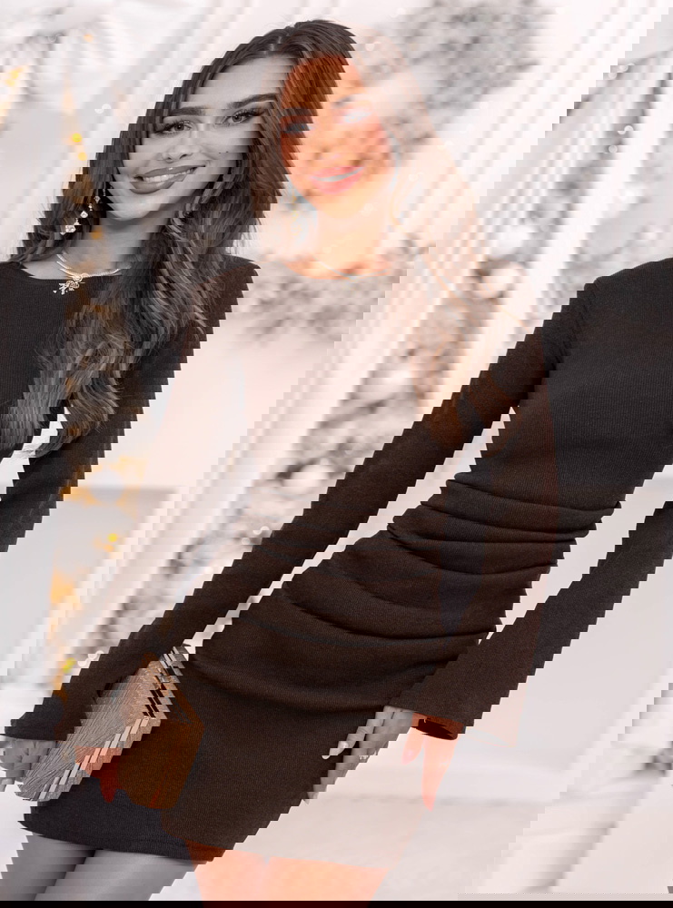Czekoladowa prążkowana sukienka mini Dellma to połączenie subtelnej elegancji i kobiecego wdzięku w codziennym wydaniu. Jej ciepły, głęboki kolor idealnie wpisuje się w jesienno-zimowy klimat, wprowadzając przytulny, ale jednocześnie szykowny nastrój. Dopasowany fason podkreśla sylwetkę, eksponując jej naturalne kształty w elegancki sposób. Długie rękawy oraz delikatny prążkowany wzór dodają całości stylowego charakteru. Marszczenie w talii optycznie modeluje figurę, tworząc harmonijny i kobiecy efekt. To sukienka, która łączy wygodę z elegancją, sprawiając, że każda stylizacja nabiera klasy. Idealna dla kobiet, które lubią czuć się wyjątkowo nie tylko od święta. To model, który doskonale podkreśla atuty, a jednocześnie zachowuje subtelny i stonowany wygląd. W tej sukience można poczuć się pewnie, stylowo i niezwykle kobieco.