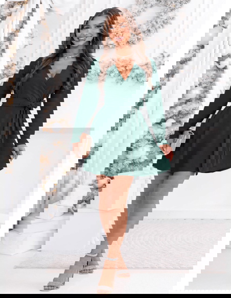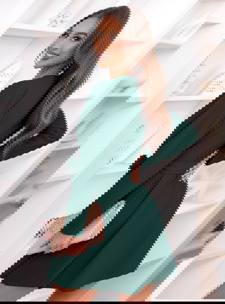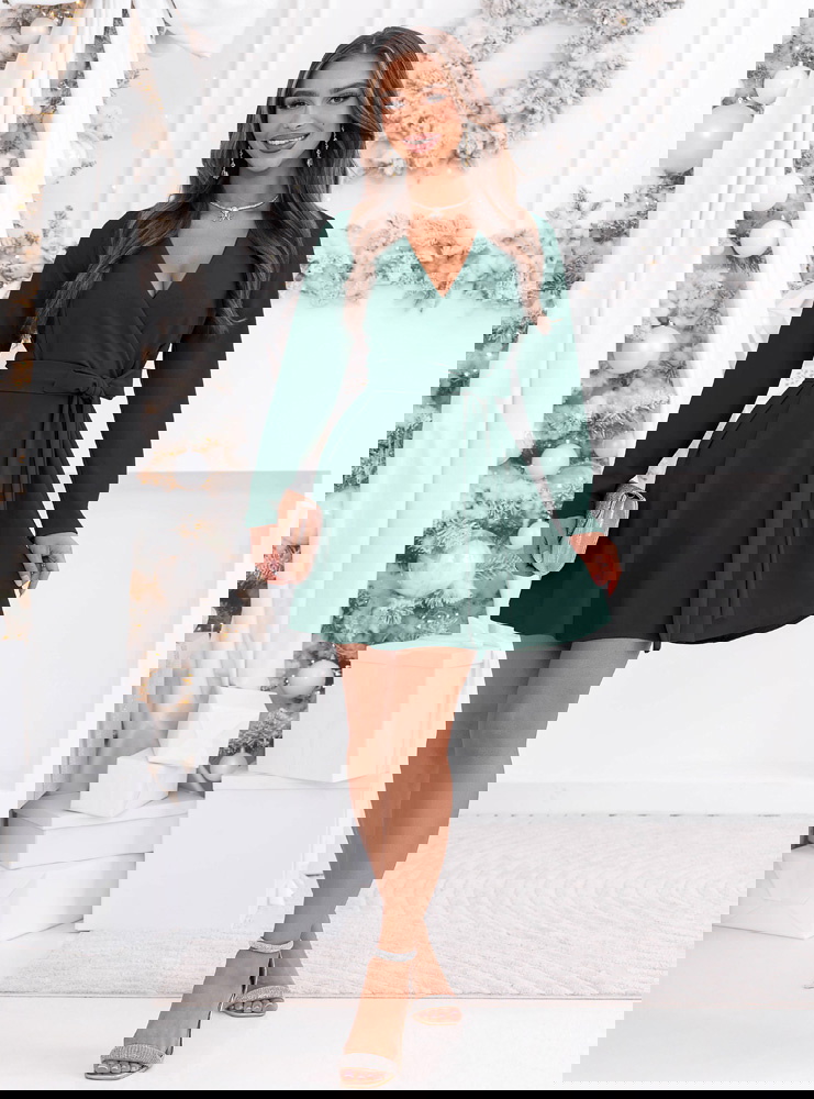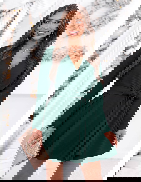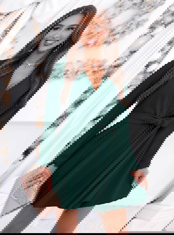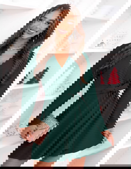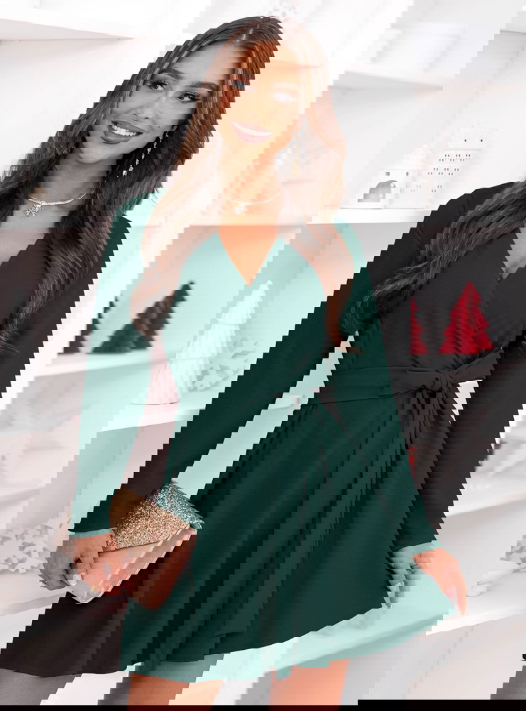 Sukienka z przekładanym dekoltem z paskiem Loreene - butelkowa zieleń to idealna propozycja na rodzinne uroczystości, świąteczne spotkania czy eleganckie kolacje. Doskonale sprawdzi się także na randce, gdzie liczy się połączenie klasy i subtelnej zmysłowości.