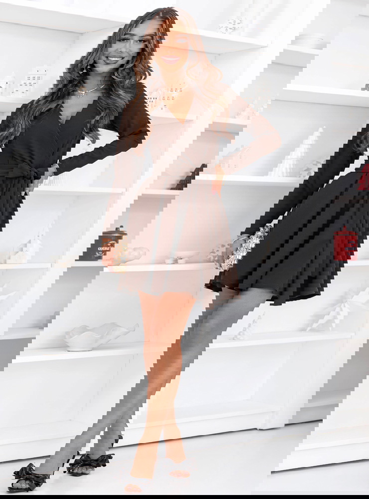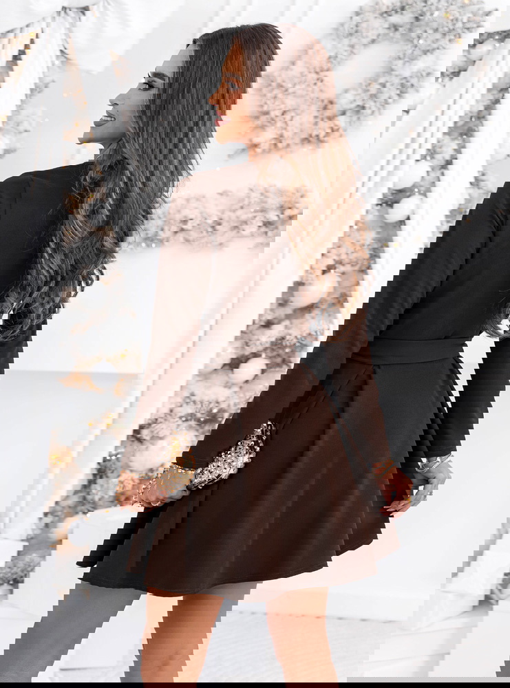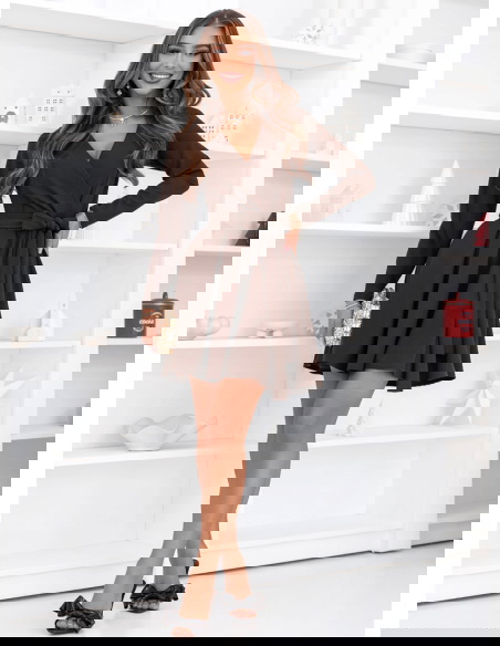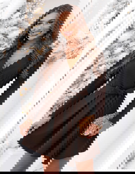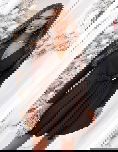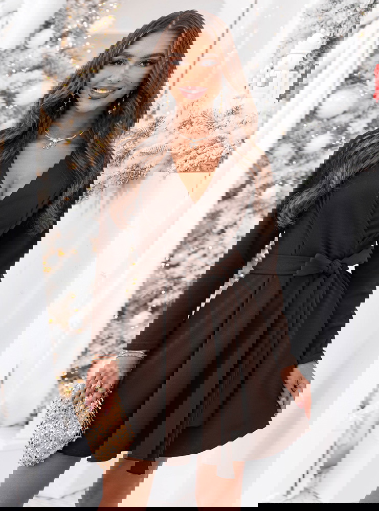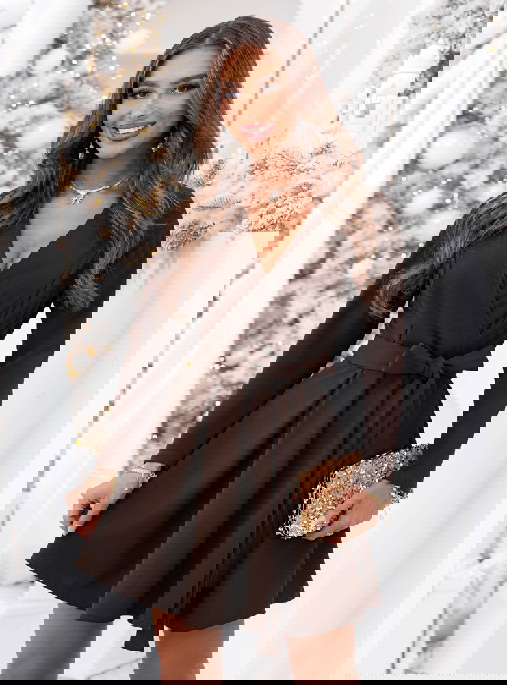 Czekoladowa sukienka z przekładanym dekoltem z paskiem Loreene doskonale sprawdzi się na świąteczne spotkania, uroczyste kolacje, randki czy wieczorne wyjścia. Będzie też świetnym wyborem do pracy, jeśli połączysz ją z delikatnymi dodatkami.