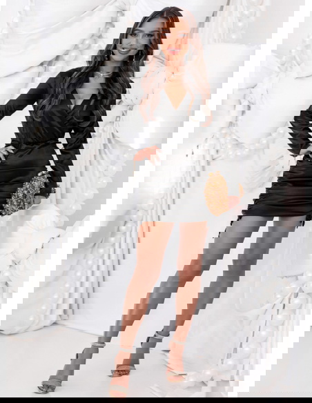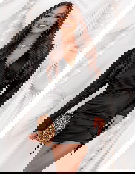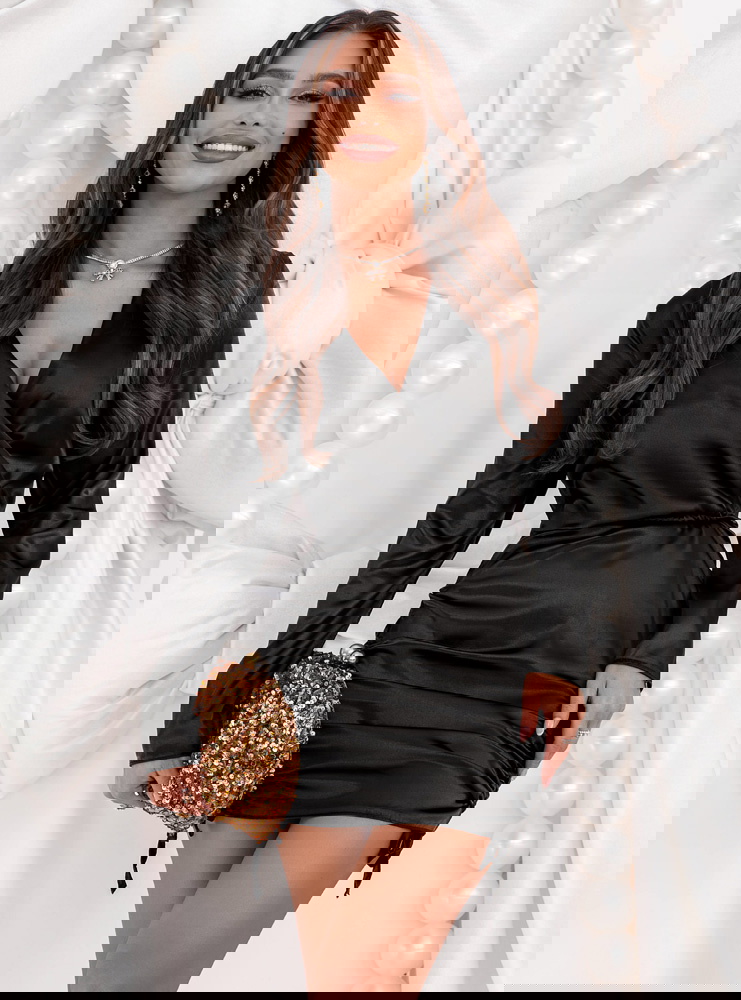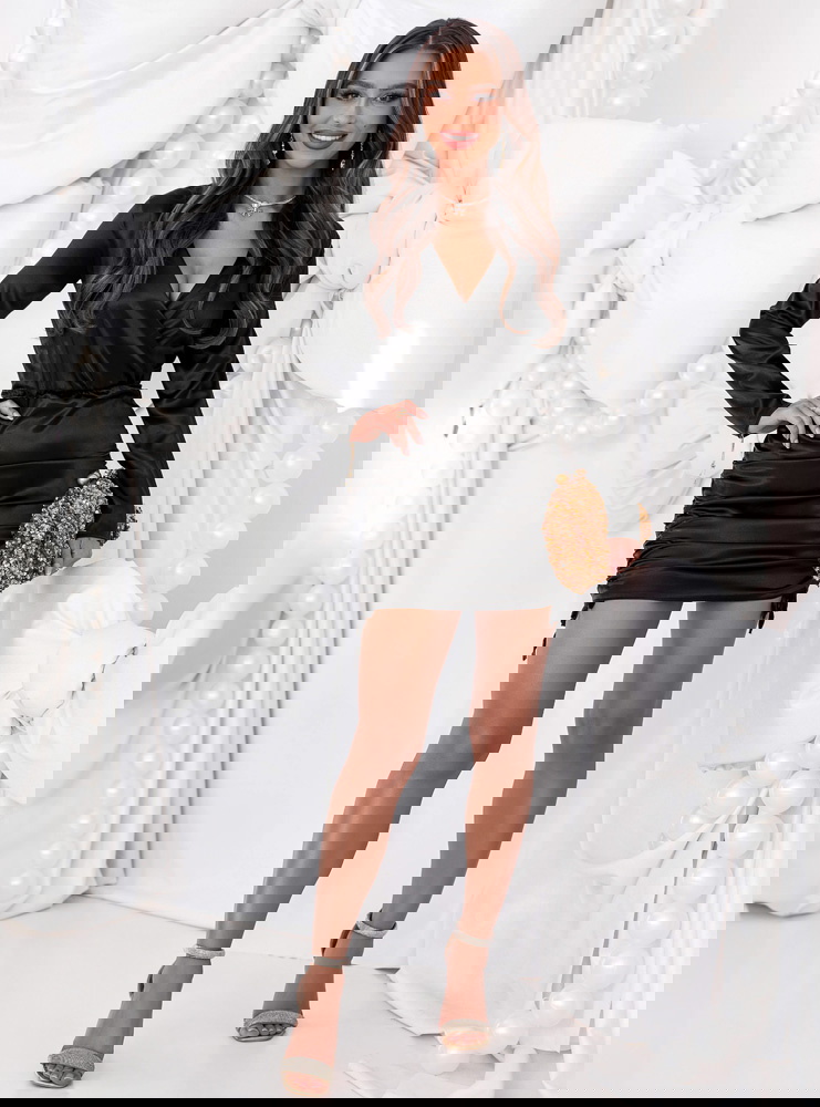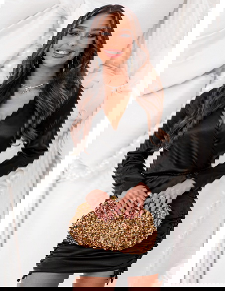 Czarna satynowa sukienka ze ściągaczami po bokach Nadettee to wyjątkowa propozycja dla kobiet, które cenią elegancję w zmysłowym wydaniu. Jej połyskujące wykończenie przyciąga spojrzenia, dodając stylizacji luksusowego charakteru. Przekładany dekolt subtelnie podkreśla biust i szyję, wprowadzając kobiecy akcent. Dopasowany krój pięknie modeluje sylwetkę, a ściągacze po bokach pozwalają regulować długość i dopasowanie, tworząc efektowne marszczenia. To kreacja, która idealnie łączy nowoczesny szyk z klasyczną elegancją. Długie rękawy dodają całości równowagi, czyniąc sukienkę odpowiednią na wieczorne wyjścia i wyjątkowe okazje. To model, który sprawia, że każda kobieta poczuje się wyjątkowo — elegancko, zmysłowo i pewnie siebie.