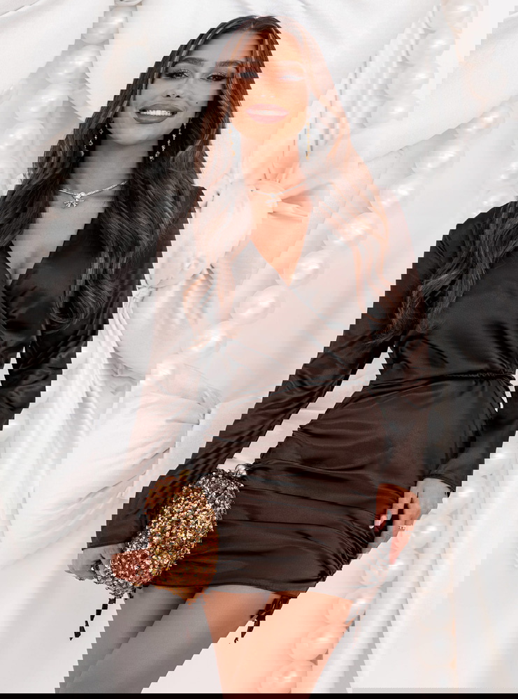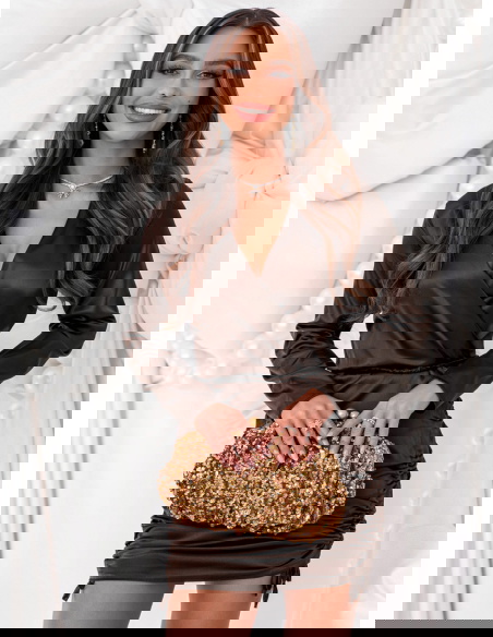 Czekoladowa satynowa sukienka ze ściągaczami po bokach Nadettee to połączenie elegancji, zmysłowości i ponadczasowego szyku. Jej głęboki odcień brązu pięknie podkreśla urodę, a delikatny połysk materiału dodaje całości luksusowego charakteru. Dopasowany krój subtelnie eksponuje kobiecą sylwetkę, jednocześnie pozostając niezwykle stylowy. Przekładany dekolt nadaje sukience eleganckiego wyrazu, a ściągacze po bokach wprowadzają lekki, nowoczesny akcent. To idealny wybór dla kobiet, które cenią sobie modną prostotę w wyjątkowym wydaniu. Każdy detal w tej sukience został dopracowany z myślą o podkreśleniu kobiecości i klasy. W niej poczujesz się pewnie, stylowo i wyjątkowo – niezależnie od okazji.