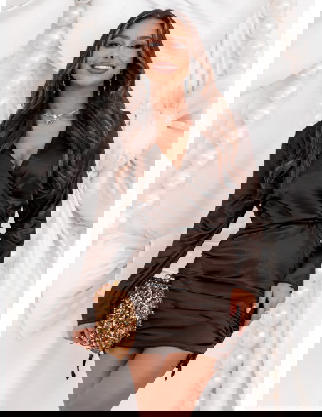 Czekoladowa satynowa sukienka na...