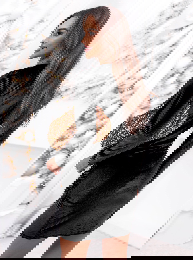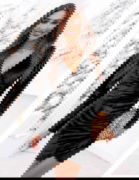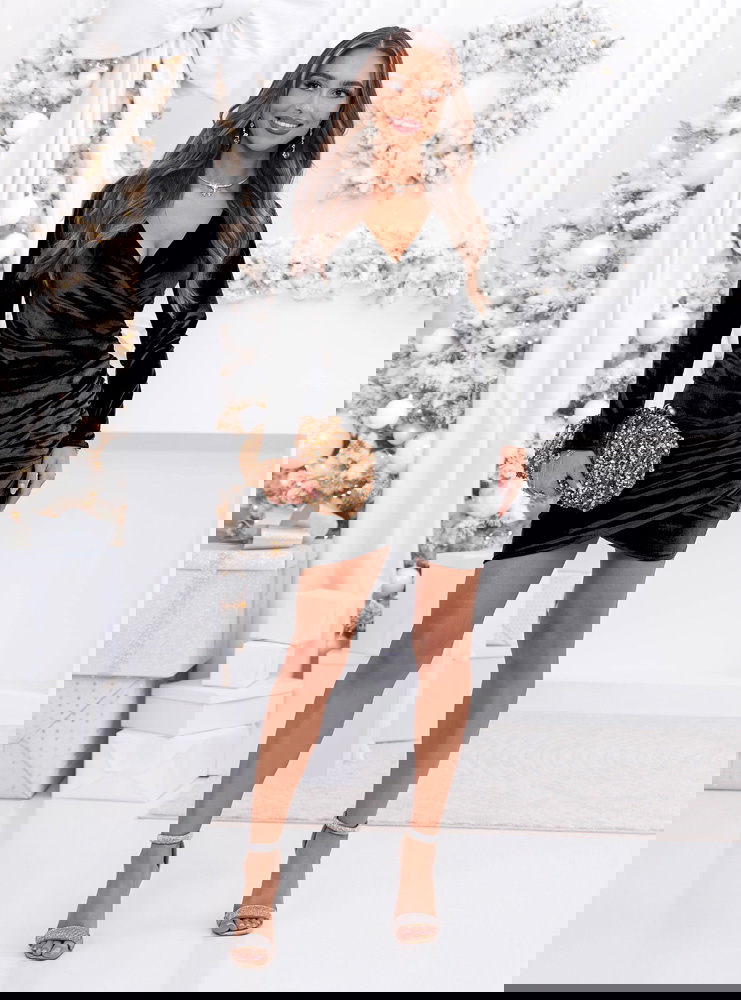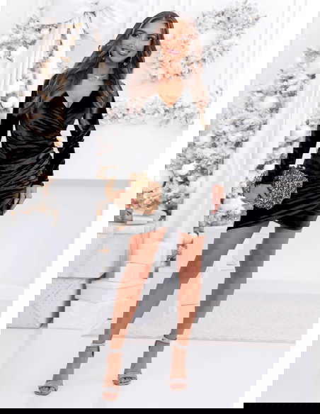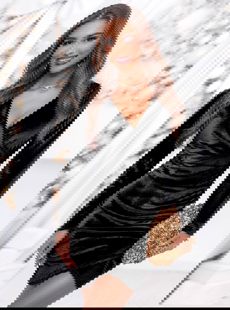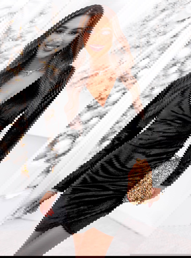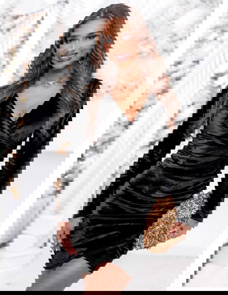 Czarna welurowa sukienka z przekładanym dekoltem Cherree to propozycja, która od pierwszego spojrzenia przyciąga uwagę subtelną elegancją. To model, który doskonale wpisuje się w jesienno-zimowy klimat, dodając stylizacji wyjątkowego, wieczorowego blasku. Jej charakter sprawia, że każda kobieta może poczuć się w niej pewnie i wyjątkowo. Sukienka pięknie podkreśla kobiecą sylwetkę, nie przytłaczając jej zbędnymi detalami. Dzięki swojej formie tworzy harmonijny i niezwykle kobiecy efekt. To idealna propozycja na chłodniejsze dni, kiedy chcemy wyglądać elegancko, a jednocześnie czuć się komfortowo. Minimalistyczny krój sprawia, że sukienka staje się doskonałą bazą do wielu stylizacji. Jej wyrazista czerń świetnie komponuje się z jesienno-zimową paletą barw, nadając całości szyku. To także model, który nie wychodzi z mody, dlatego z łatwością dopasujesz go do swoich ulubionych dodatków. Właśnie dlatego ta sukienka szybko może stać się Twoim niezawodnym wyborem na wyjątkowe okazje.