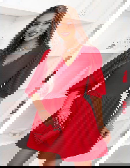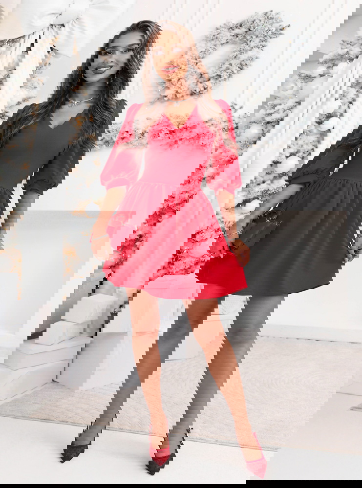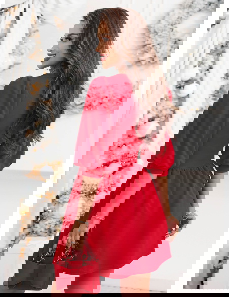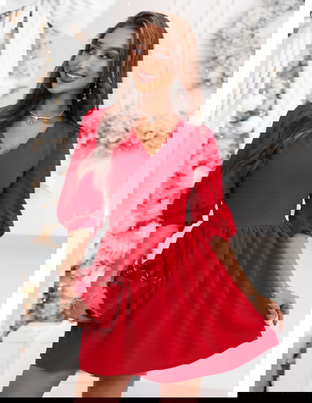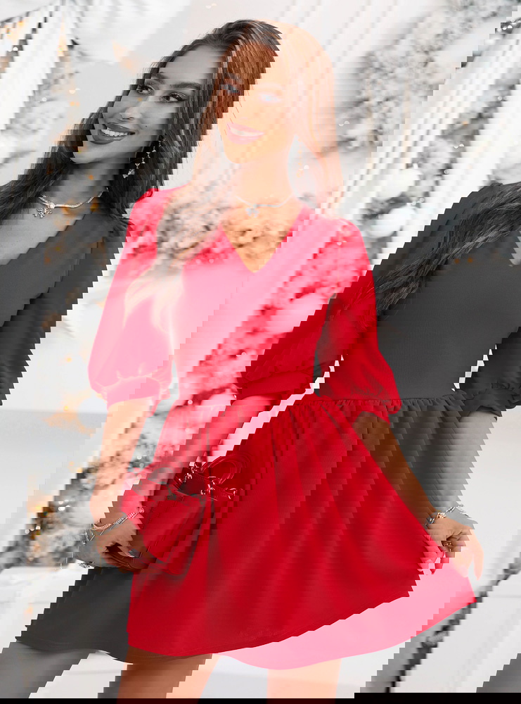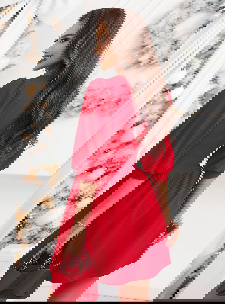 Malinowa sukienka na święta z bufiastymi rękawami Brinityy