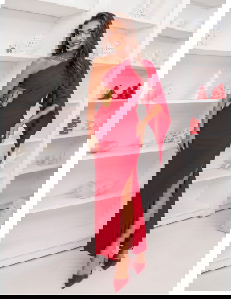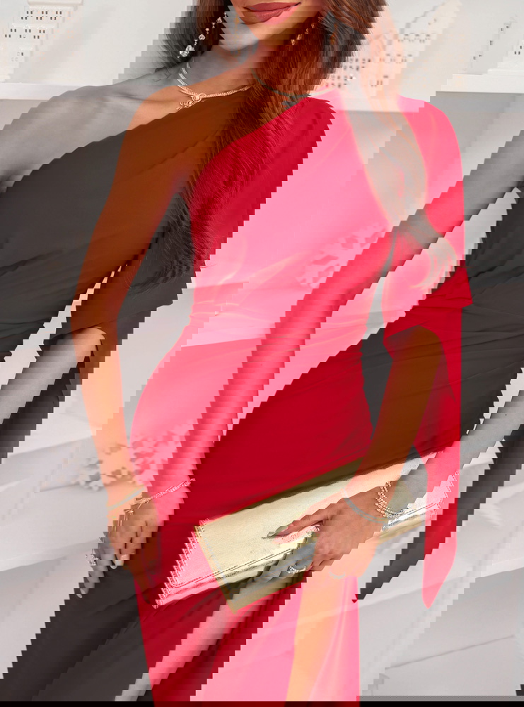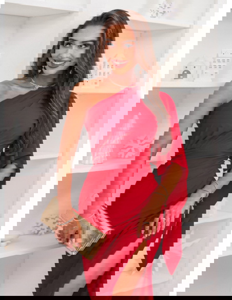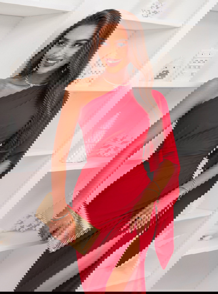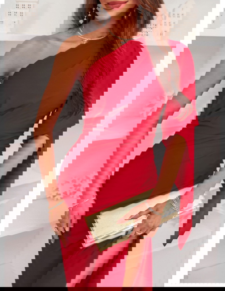 Malinowa sukienka na jedno ramię z rozcięciem Cayley zachwyca połączeniem nowoczesnego kroju i eleganckiej formy. Jej intensywny kolor i efektowne detale sprawiają, że trudno przejść obok niej obojętnie.