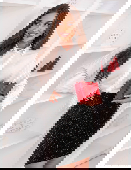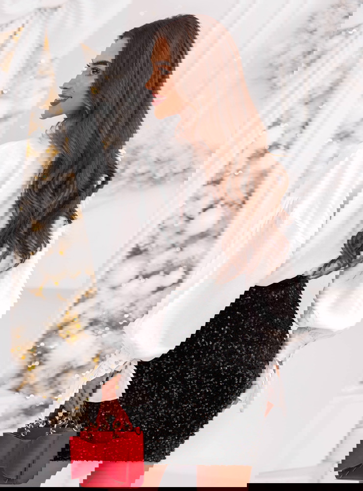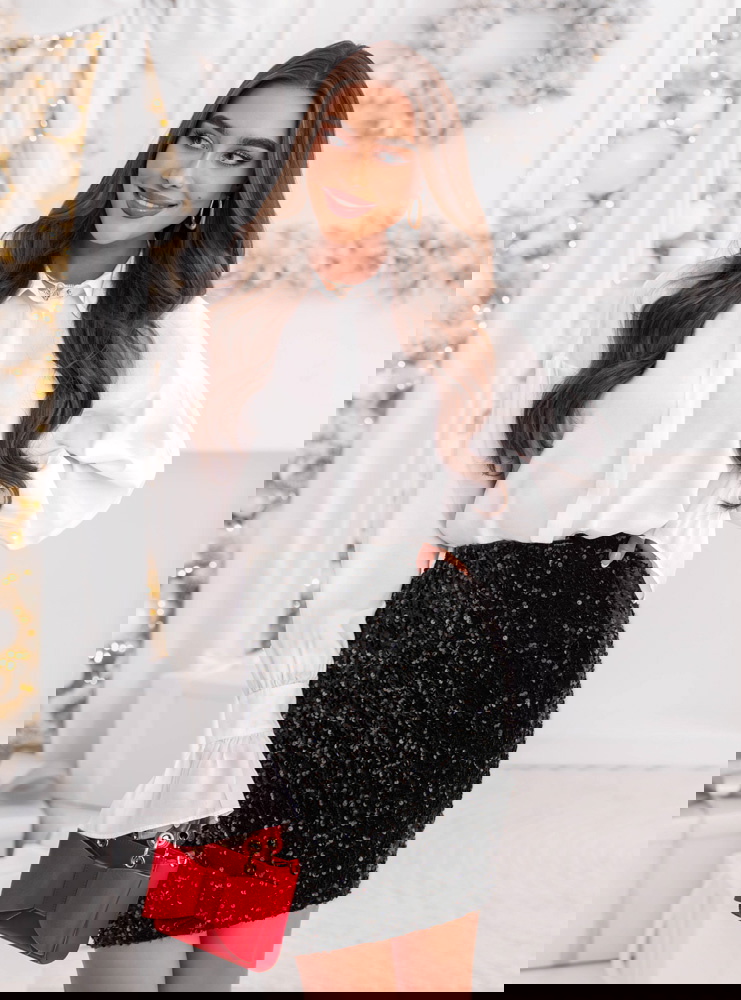 Czarna cekinowa mini spódniczka Tuliia doskonale sprawdzi się podczas świątecznych spotkań i zimowych przyjęć. Jest idealna na sylwestrowe wyjścia, kiedy możesz pozwolić sobie na odrobinę więcej blasku.