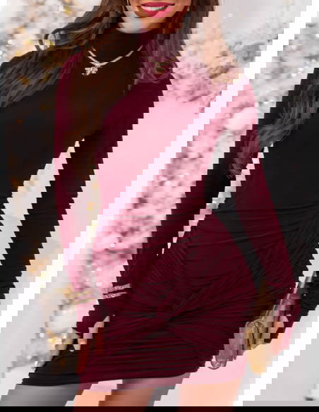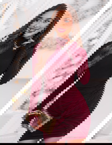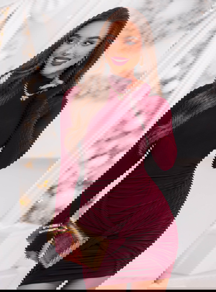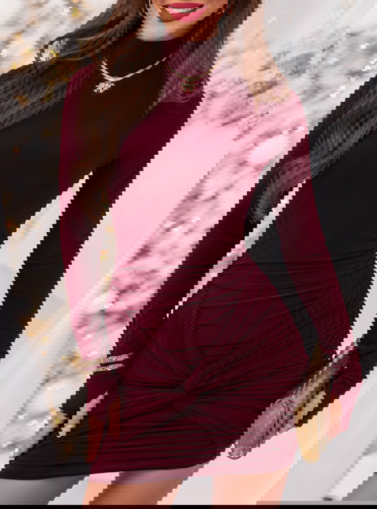 Bordowa sukienka mini z marszczeniami Nickilaa to propozycja, która od pierwszego spojrzenia zachwyca elegancją i zmysłowym, jesienno-zimowym charakterem. Jej głęboki, bordowy odcień wprowadza do stylizacji ciepło i szyk, idealnie pasując do sezonu pełnego świateł i wyjątkowych spotkań. Dopasowany fason pięknie podkreśla sylwetkę, dodając pewności siebie w subtelnym, nienachalnym stylu. Gładka góra z długim rękawem oraz stójką tworzy elegancki kontrast dla efektownego dołu. Marszczenia nadają sukience wyjątkowej struktury, tworząc wrażenie lekkości i delikatnej dynamiki. Ozdobny węzeł w centralnej części podkreśla talię, dodając stylizacji kobiecej harmonii. Całość prezentuje się nowocześnie, a jednocześnie ponadczasowo, idealnie wpisując się w chłodniejsze miesiące. To sukienka, która potrafi przyciągnąć wzrok, zachowując pełną klasę i elegancję. Jej forma sprawia, że nosi się ją komfortowo, a jednocześnie efektownie. To idealna propozycja dla kobiet, które chcą czuć się wyjątkowo i stylowo.