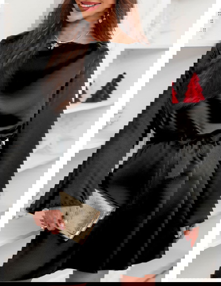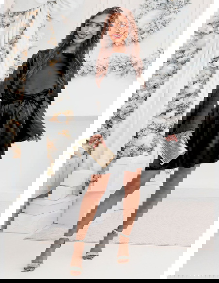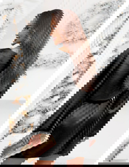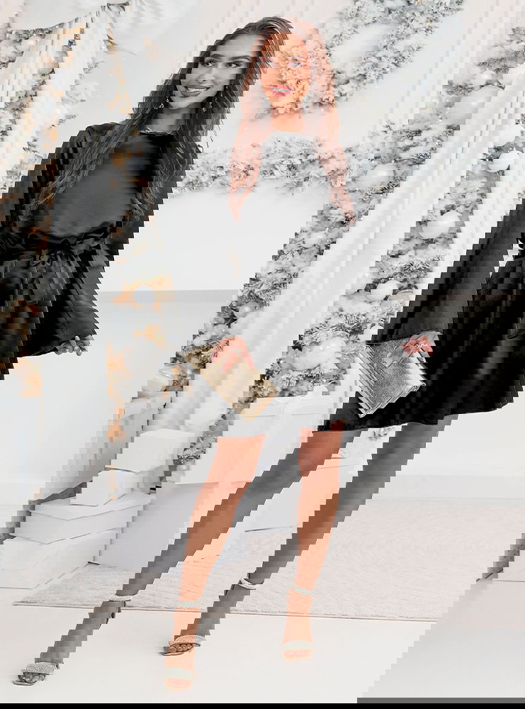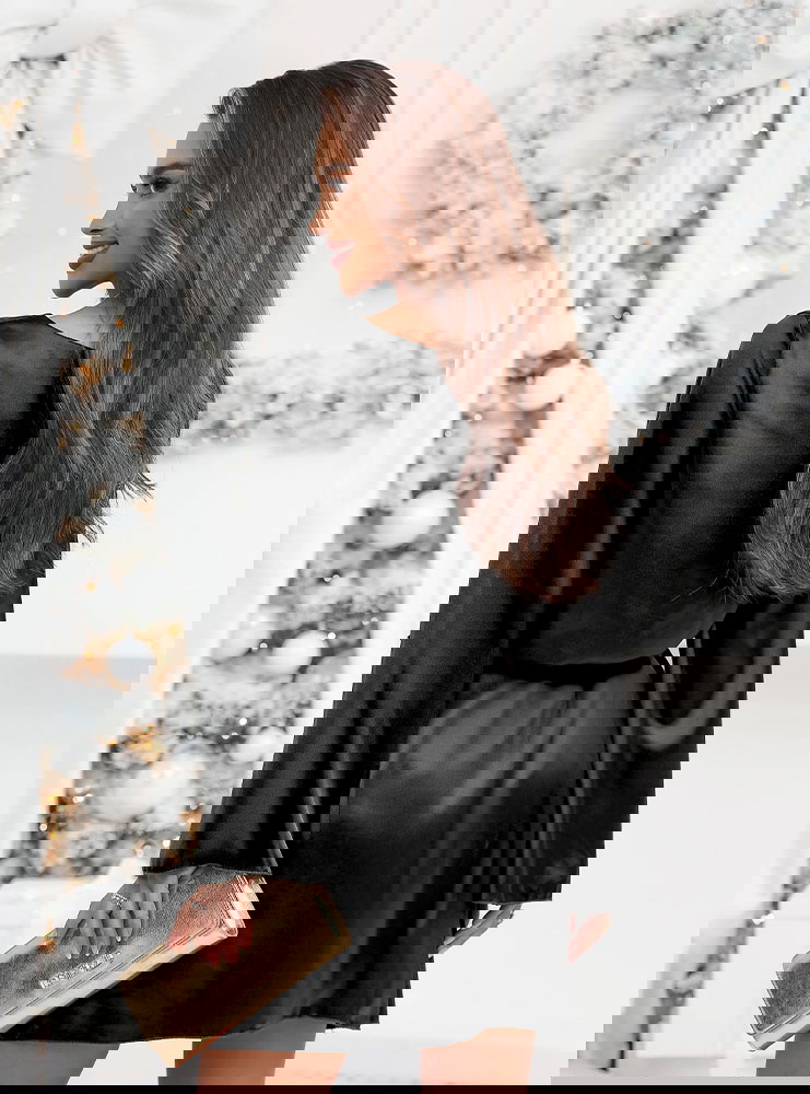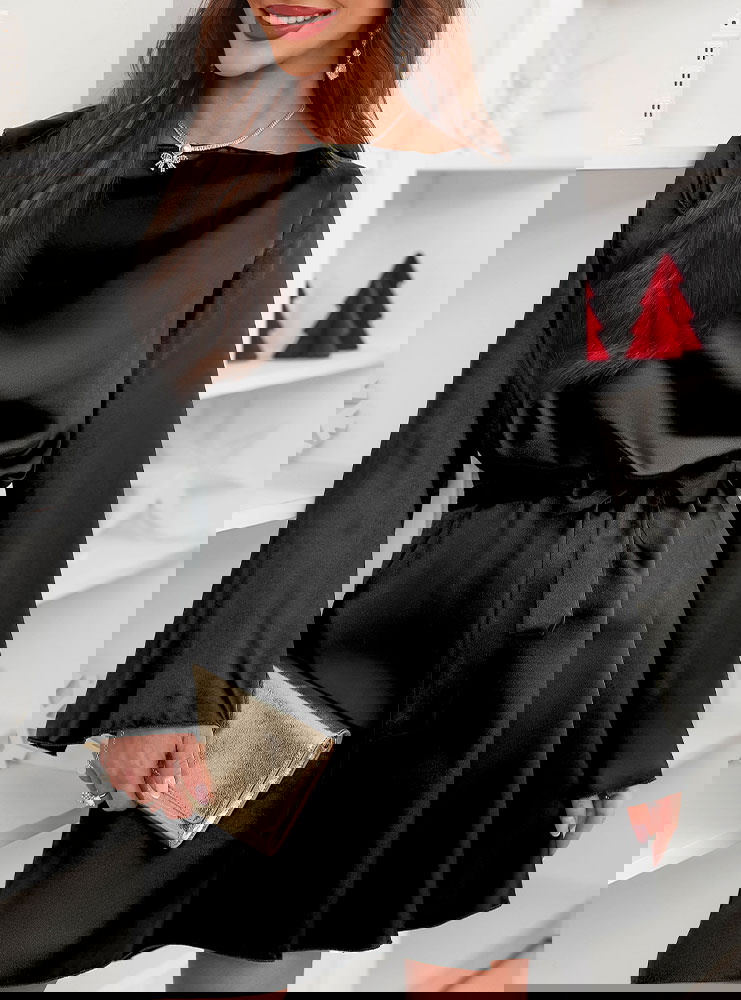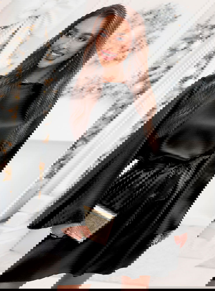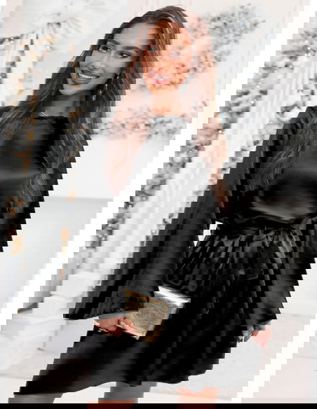 Czarna atłasowa sukienka z paskiem Lakeshaa to połączenie elegancji, lekkości i uniwersalnego stylu. Pasek pozwala pięknie podkreślić talię, a rozszerzane rękawy dodają wyjątkowego charakteru.