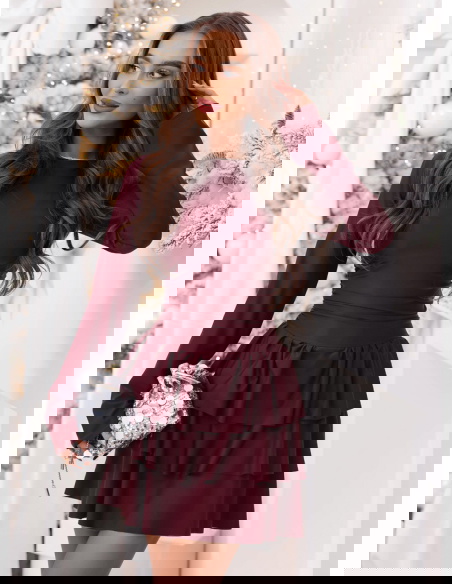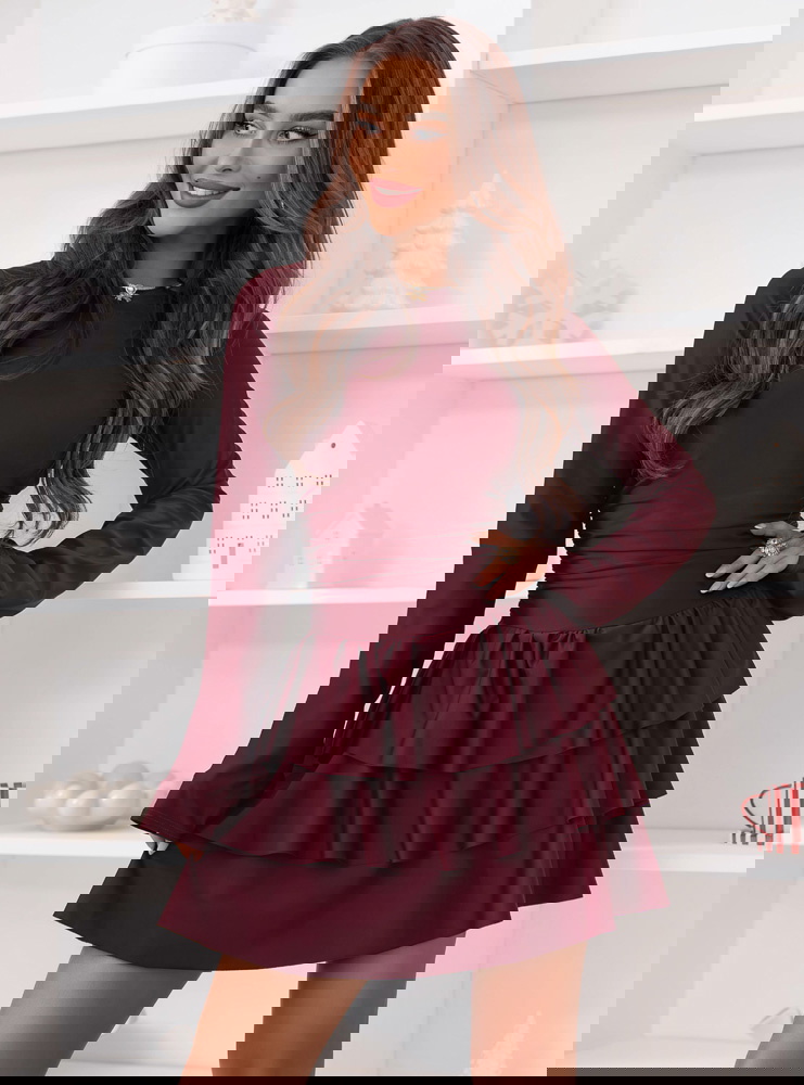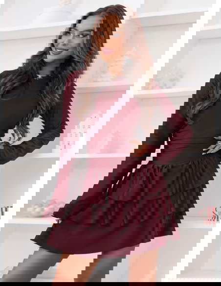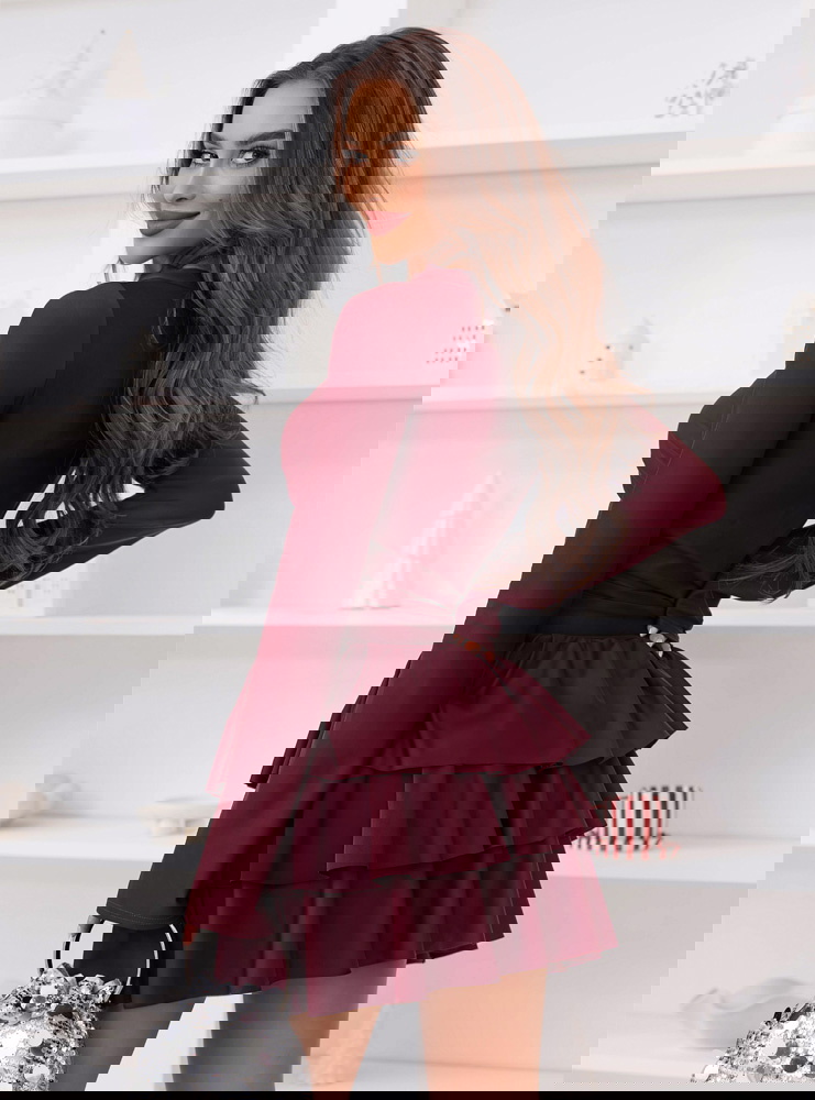 Bordowy świąteczny kombinezon jak sukienka z marszczeniami po bokach Carmelie