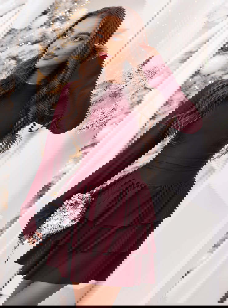 Bordowy kombinezon jak sukienka z marszczeniami po bokach Carmelie to propozycja, która od pierwszego spojrzenia zachwyca elegancją i wyjątkowym, jesienno-zimowym charakterem. To model stworzony dla osób, które kochają połączenie wygody kombinezonu z urokiem romantycznej sukienki. Jego głęboki bordowy odcień idealnie wpisuje się w klimat zimowych uroczystości, dodając stylizacjom szlachetności i ciepła. Góra o dopasowanej linii pięknie podkreśla sylwetkę i nadaje całości harmonijnego wyglądu. Efektowne marszczenia po bokach w talii subtelnie modelują figurę, tworząc kobiecy, smukły efekt. Rozkloszowana, warstwowa część dolna sprawia, że kombinezon prezentuje się jak stylowa sukienka o wyjątkowym uroku. Długie rękawy dodają lekkości oraz idealnie korespondują z zimowym sezonem. To model, który łączy komfort noszenia z wyrazistym, eleganckim wyglądem.