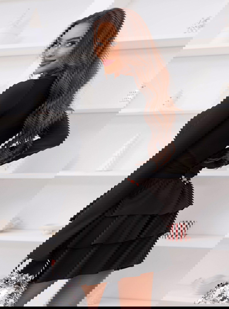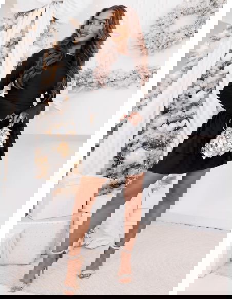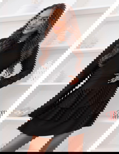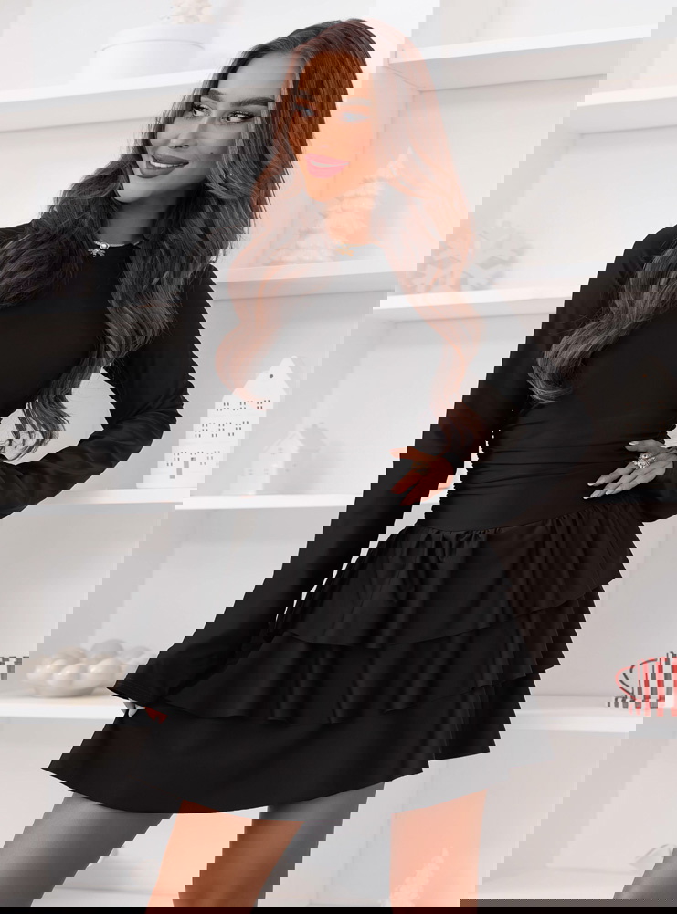 Czarny kombinezon jak sukienka z marszczeniami po bokach Carmelie to propozycja, która od pierwszego spojrzenia zachwyca elegancją połączoną z nowoczesnym, niezwykle kobiecym designem. To model idealny na jesienno-zimowy sezon, kiedy zależy nam na stylizacjach komfortowych, ale jednocześnie efektownych. Jego głęboka czerń dodaje całości klasy i uniwersalności, dzięki czemu łatwo dopasować go do wielu okazji. Długie rękawy oraz dopasowana góra podkreślają sylwetkę w subtelny, wyważony sposób. Marszczenia po bokach wprowadzają delikatną strukturę, która dodatkowo modeluje talię i nadaje całości nowoczesnego wykończenia. Największym atutem jest sprytnie zaprojektowany dół – imitujący sukienkę, ale oferujący wygodę kombinezonu, co sprawia, że stylizacja prezentuje się lekko i dziewczęco, a jednocześnie pozostaje niezwykle komfortowa. Warstwowe falbany tworzą efektowny, pełen ruchu akcent, idealny na chłodniejszy sezon pełen uroczystości. To propozycja dla kobiet, które lubią łączyć klasykę z nowoczesnym twistem. Model przyciąga uwagę, nie tracąc przy tym eleganckiego charakteru, który tak pięknie wpisuje się w zimowy klimat.