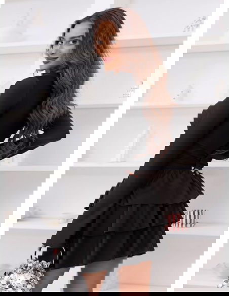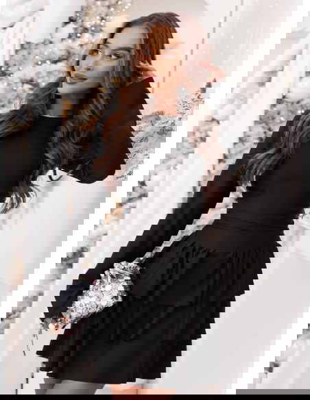Czarny świąteczny kombinezon jak sukienka z marszczeniami po bokach Carmelie