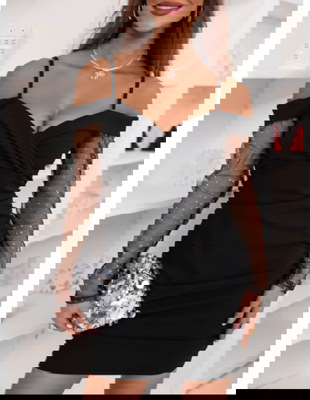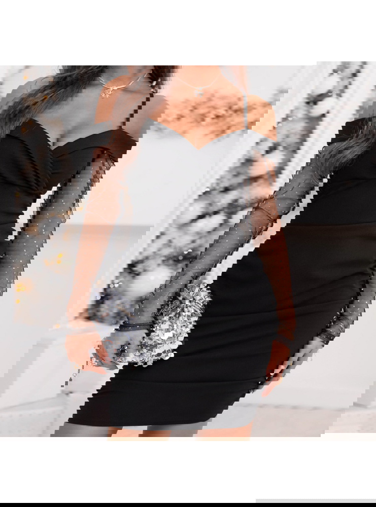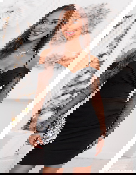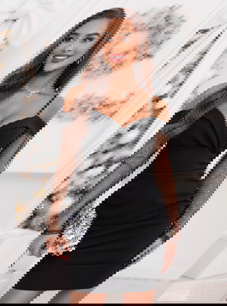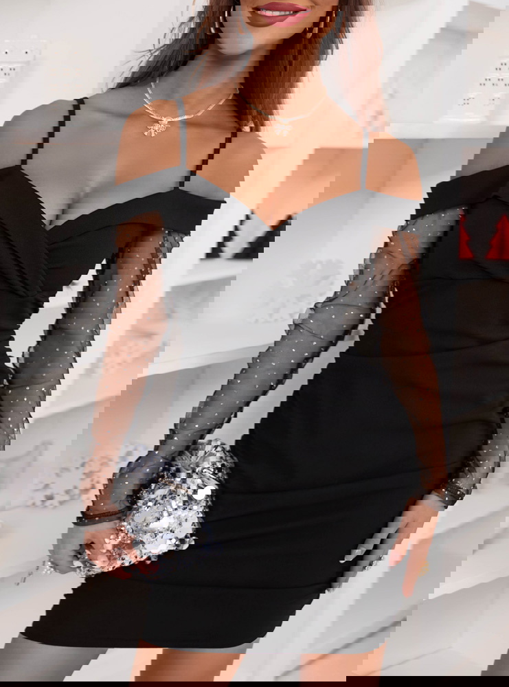 Czarna sukienka z tiulowymi rękawami Nonalyn świetnie sprawdzi się podczas świątecznych kolacji oraz zimowych przyjęć. Jest idealna na sylwestra, gdzie błyszczące detale pięknie podkreślą wyjątkowy charakter wieczoru.