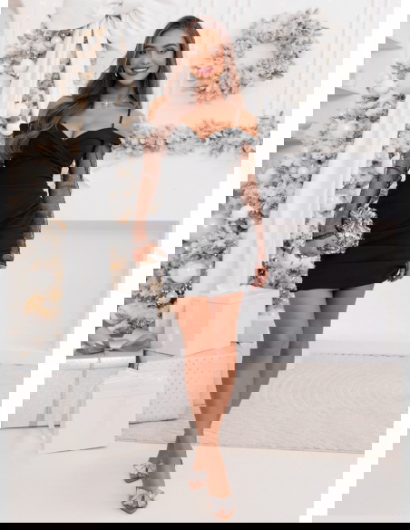 Czarna sukienka z tiulowymi rękawami Nonalyn to propozycja, która już od pierwszego spojrzenia przyciąga elegancją i subtelną zmysłowością. Jej klasyczny kolor doskonale wpisuje się w jesienno-zimowy klimat, dodając stylizacjom ponadczasowego uroku. To model, który zachwyca detalami, a jednocześnie pozostaje niezwykle lekki wizualnie. Sukienka pięknie podkreśla sylwetkę, nie tracąc przy tym wygody i swobody ruchów. Tiulowe rękawy zdobione drobnymi akcentami wprowadzają nutę nowoczesności i delikatnego błysku. Od pierwszej chwili widać, że to idealny wybór na bardziej wyjątkowe momenty sezonu. Jej wyrazisty, kobiecy charakter świetnie współgra z eleganckimi dodatkami. To propozycja stworzona dla kobiet, które lubią czuć się stylowo, nie rezygnując z subtelności. Każdy detal sukienki podkreśla jej wieczorowy, efektowny charakter, pozostając jednocześnie w dobrym tonie. To model, który sprawia, że zimowe i świąteczne chwile nabierają wyjątkowego blasku.