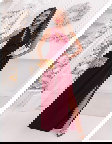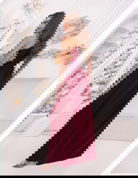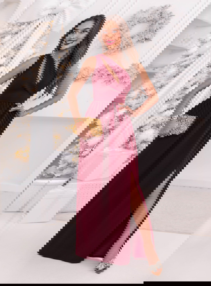 Bordowa świąteczna sukienka na jedno ramię z rozcięciem Westila