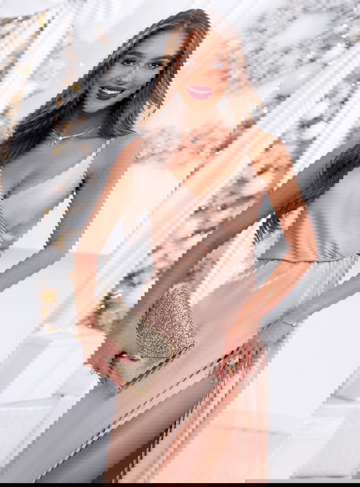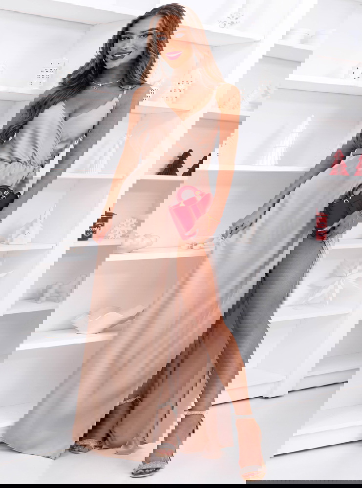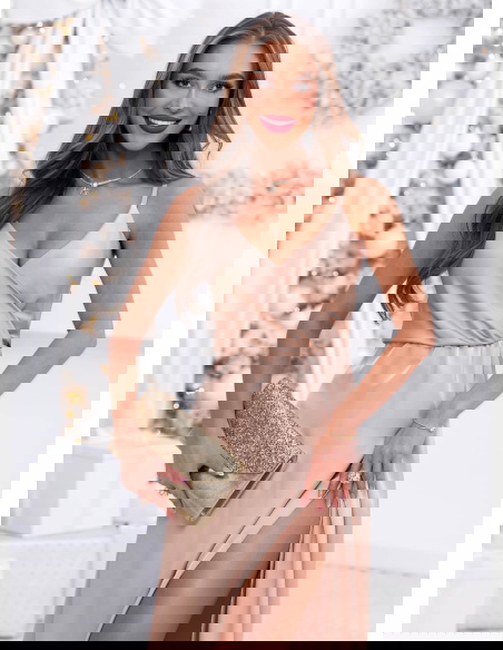 Beżowa sukienka satynowa maxi na ramiączkach Linaevee to propozycja, która już od pierwszego spojrzenia zachwyca lekkością, elegancją i subtelnym blaskiem, idealnym na sezon jesienno-zimowy. Jej delikatny, beżowy odcień wprowadza do stylizacji przyjemne ciepło i ponadczasową klasykę. Przekładana góra tworzy miękką, kobiecą linię, pięknie podkreślając dekolt i dodając całości szykowności. Ramiączka nadają sukience zwiewnego charakteru, a jednocześnie pozostają eleganckim akcentem na wyjątkowe okazje. Długa, spływająca ku dołowi forma subtelnie wydłuża sylwetkę, tworząc efekt wyjątkowej lekkości w ruchu. Rozcięcie na nodze dodaje zmysłowości, ale w sposób stonowany i elegancki, idealnie wpisując się w atmosferę uroczystych wyjść. To model, który pięknie łączy prostotę z efektownością, nie przytłaczając przy tym formą. Sukienka została zaprojektowana tak, by podkreślać naturalne piękno, oferując jednocześnie wygodę noszenia. To propozycja dla kobiet, które lubią styl wyważony, ale jednocześnie pełen kobiecego wdzięku. W sezonie pełnym światła i celebracji będzie prezentować się wyjątkowo.