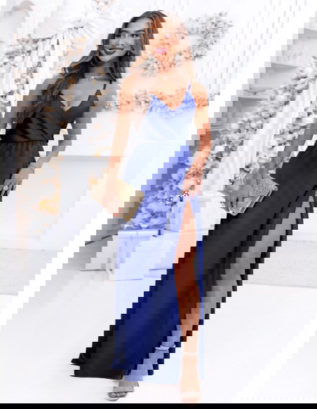 Chabrowa sukienka satynowa maxi na ramiączkach Linaevee to propozycja, która zachwyca już od pierwszego spojrzenia swoim eleganckim, wieczorowym charakterem. Jej głęboki chabrowy odcień doskonale wpisuje się w klimat jesienno-zimowych okazji, dodając stylizacjom szlachetności i wyrazistości. To model stworzony dla kobiet, które lubią podkreślać swoją kobiecość w sposób szykowny, ale wciąż subtelny. Długość maxi pięknie wydłuża sylwetkę, nadając jej lekkości i harmonii. Zwiewny dół sukienki porusza się miękko przy każdym kroku, tworząc efekt płynnej elegancji. Delikatne ramiączka dodają lekkości, jednocześnie sprawiając, że całość prezentuje się wyjątkowo zmysłowo. Sukienka wyróżnia się ponadczasowym charakterem, który sprawdzi się przy wielu formalnych okazjach. Wyważone połączenie prostoty i efektu „wow” sprawia, że nie przytłacza, a subtelnie podkreśla wyjątkowość chwili. To doskonała propozycja dla kobiet chcących poczuć się wyjątkowo, ale bez zbędnej przesady. Model ten przyciąga uwagę, pozostając jednocześnie klasyczny i niezwykle kobiecy.