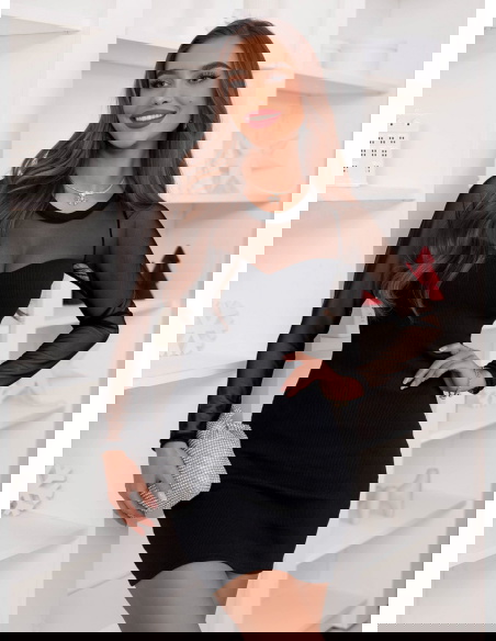 Czarna prążkowana dopasowana sukienka z tiulowymi rękawami Letanyaa to propozycja, która od pierwszego spojrzenia zachwyca swoim subtelnym charakterem. Już przy pierwszym założeniu daje poczucie wyjątkowej pewności siebie. Jej elegancki krój delikatnie podkreśla sylwetkę, pozwalając poczuć się naprawdę stylowo. Transparentne rękawy dodają całości lekkości, nadając sukience nowoczesny akcent. To model, który świetnie odnajduje się w atmosferze pełnej blasku i nastrojowych chwil. Każdy detal został zaprojektowany tak, by podkreślać Twoje naturalne atuty. Sukienka pięknie łączy prostotę z wyrazistym charakterem. Dzięki dopracowanej linii kroju prezentuje się niezwykle kobieco. Jej uniwersalny wygląd sprawia, że pasuje do wielu stylizacji. To propozycja, którą pokochasz za jej wyjątkowy urok.