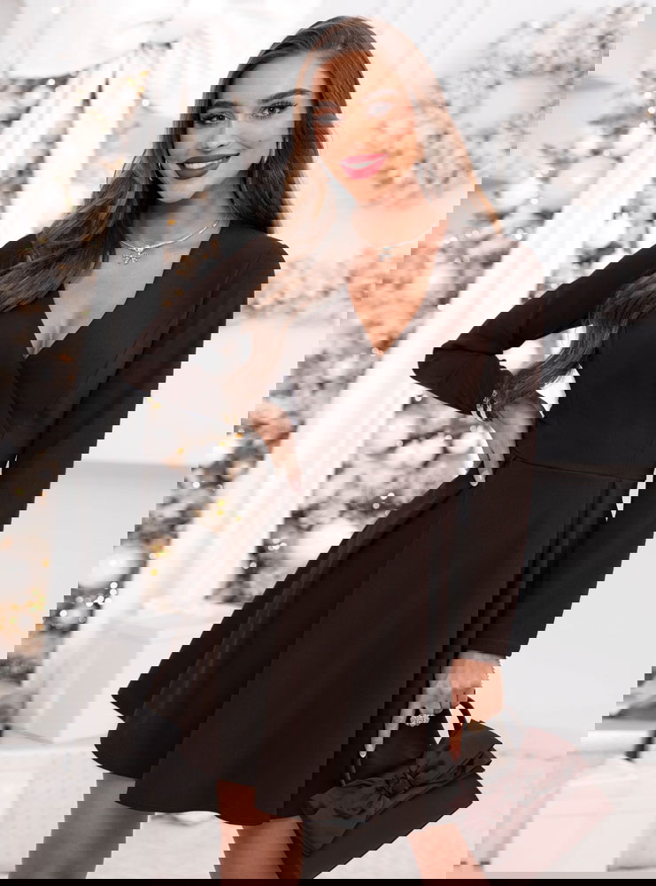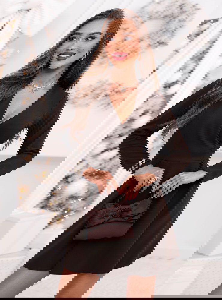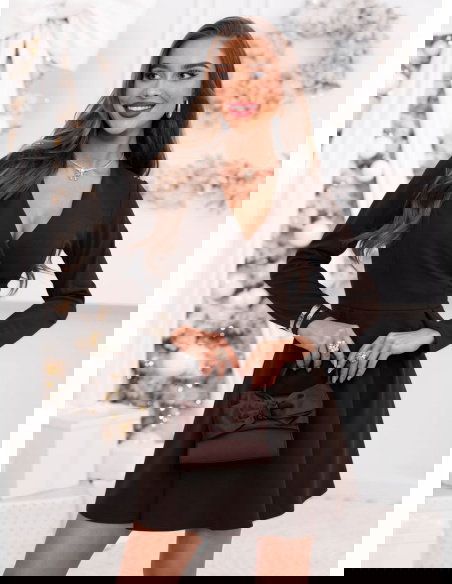 Czekoladowa sukienka z przekładanym dekoltem Rennae
